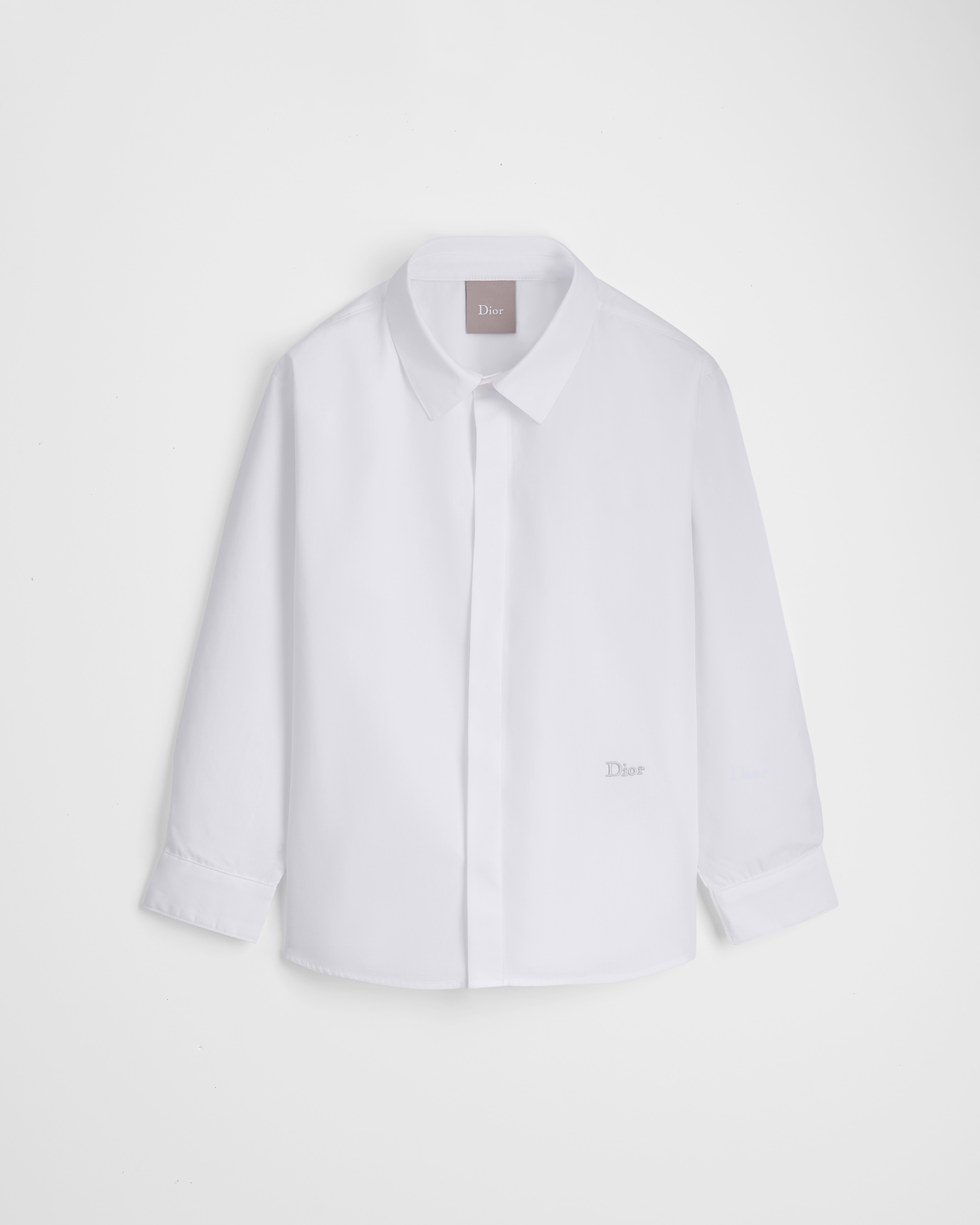 正面隐藏式纽扣开合搭配镌刻以 Dior 标志的白色纽扣