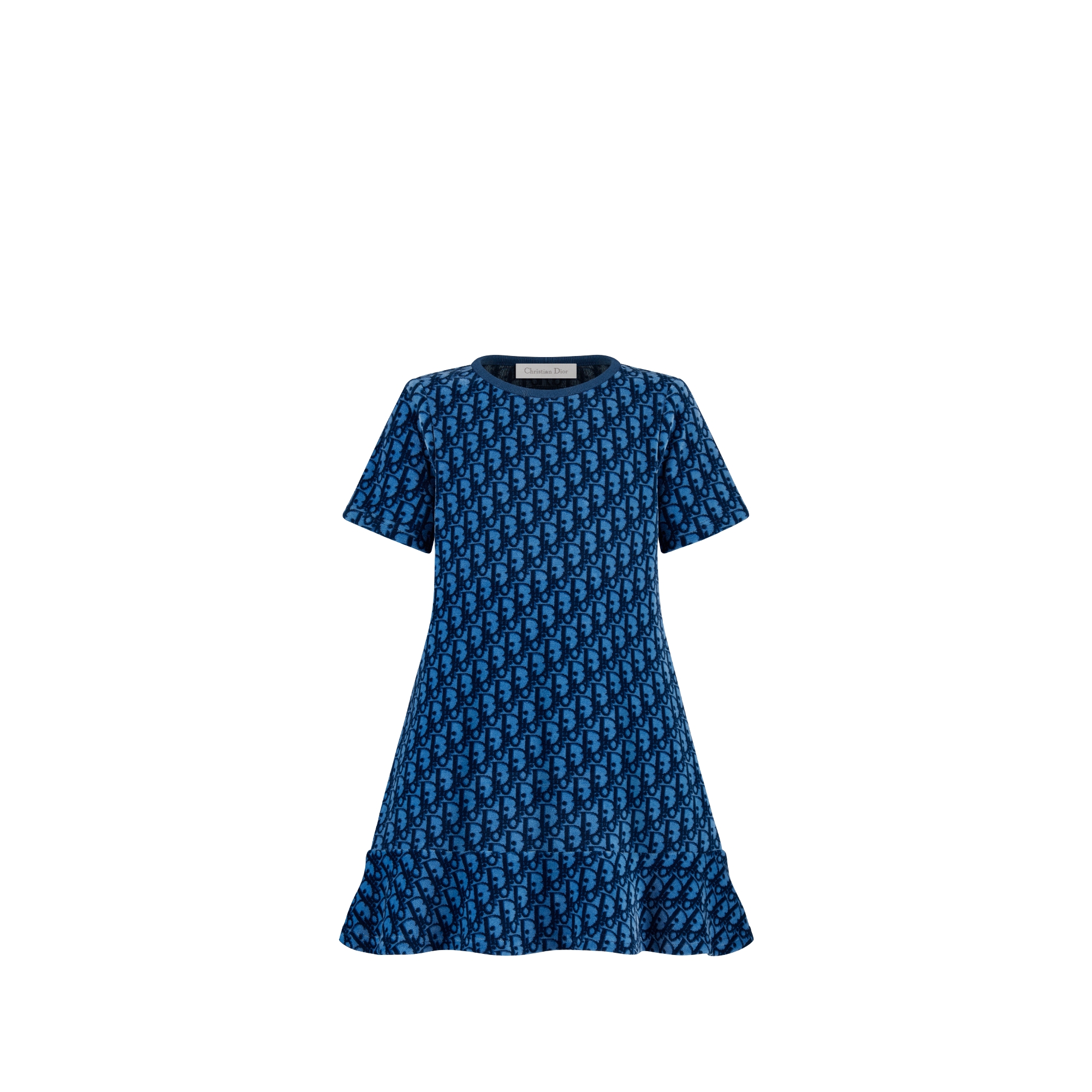 蓝色天鹅绒平纹针织面料 Oblique 印花