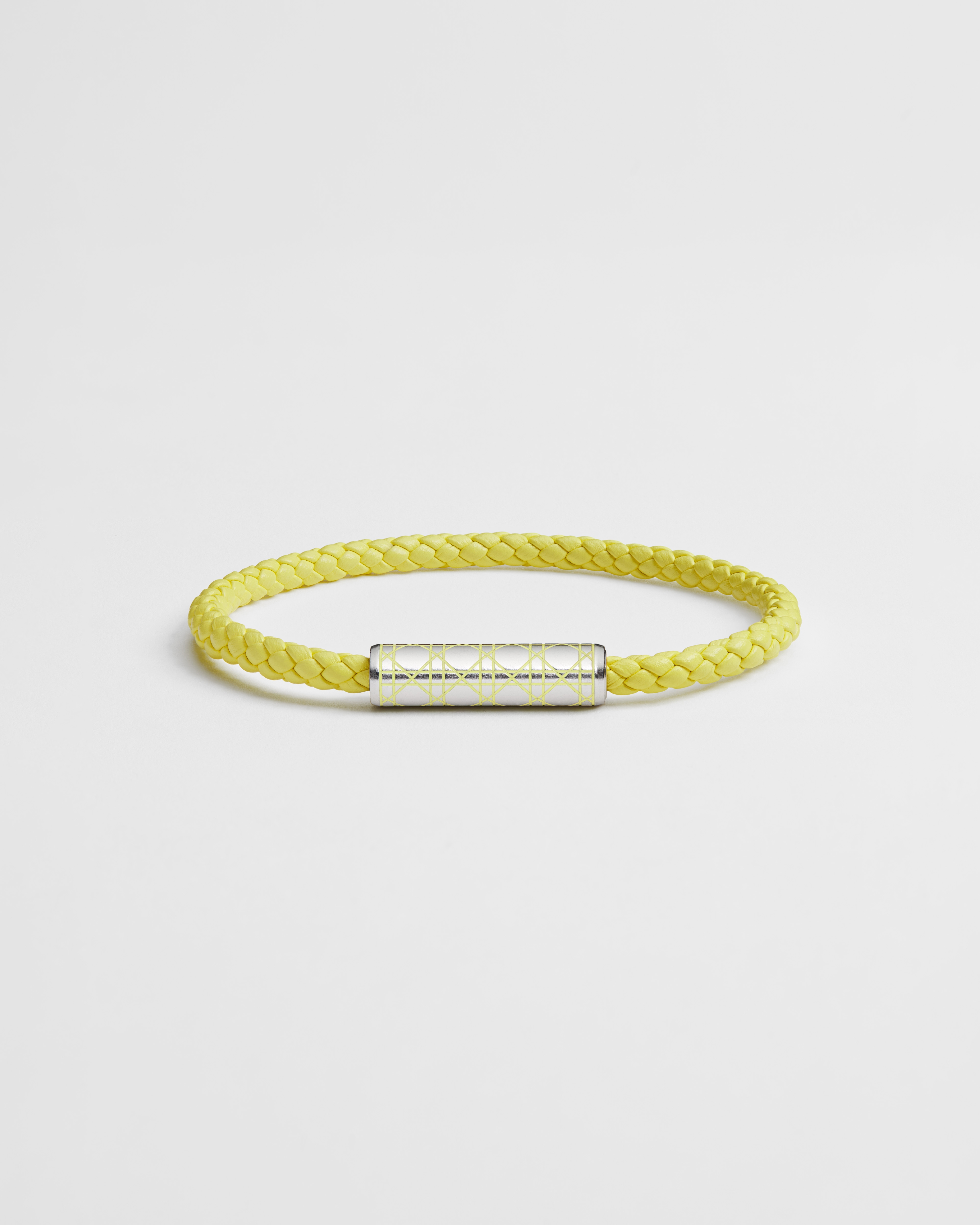 •  蓝色牛皮革、银色饰面铜合金和蓝色涂漆藤格纹