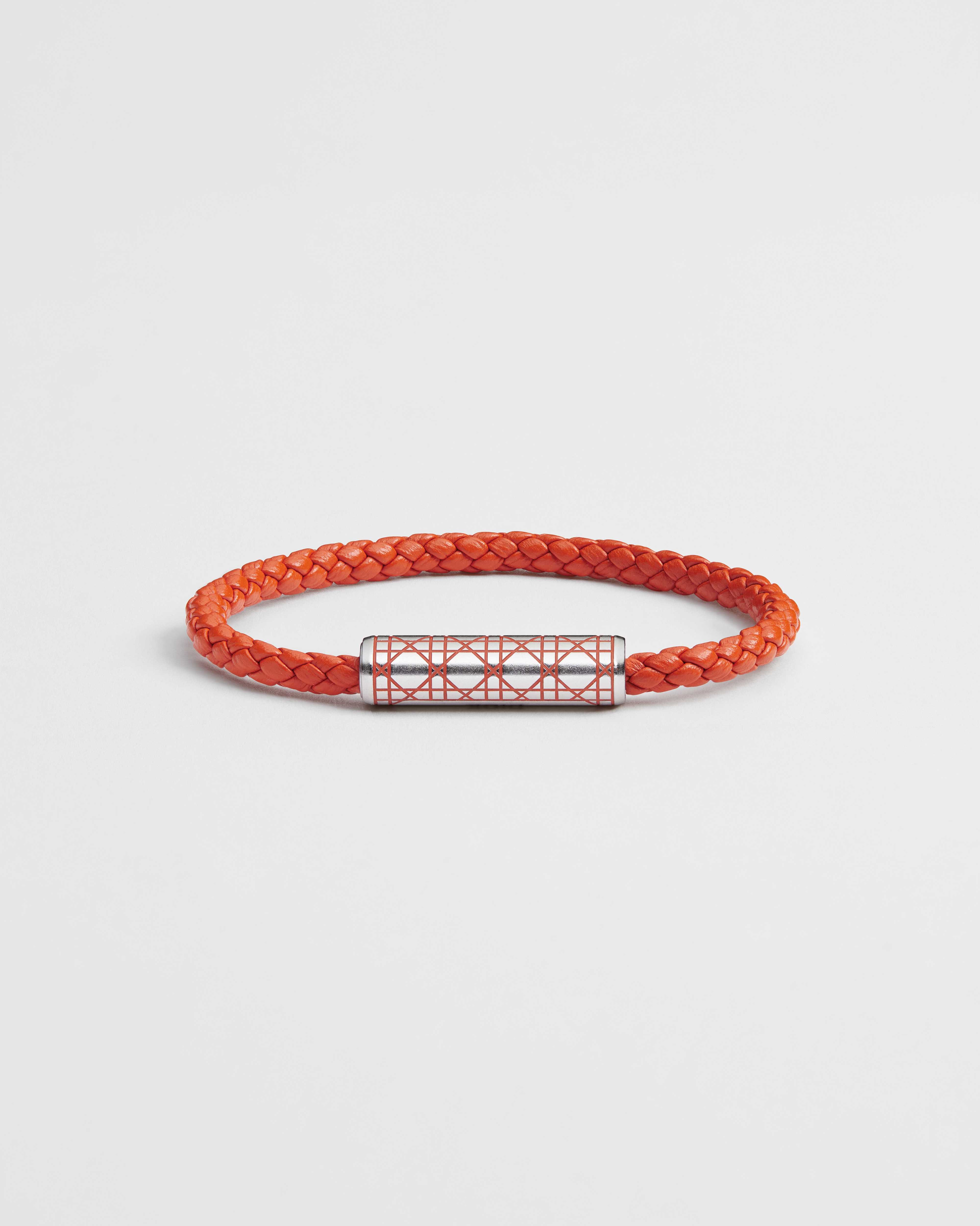 •  蓝色牛皮革、银色饰面铜合金和蓝色涂漆藤格纹