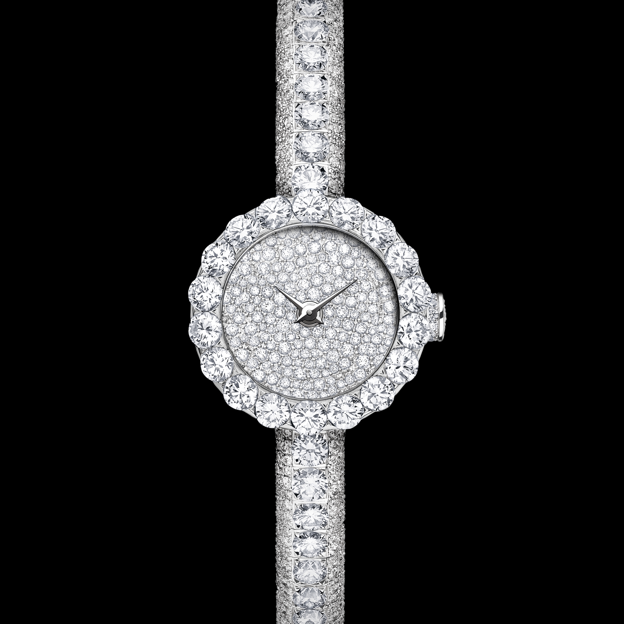白金表盘铺镶钻石(雪花镶嵌),抛光处理太子妃式白金指针。