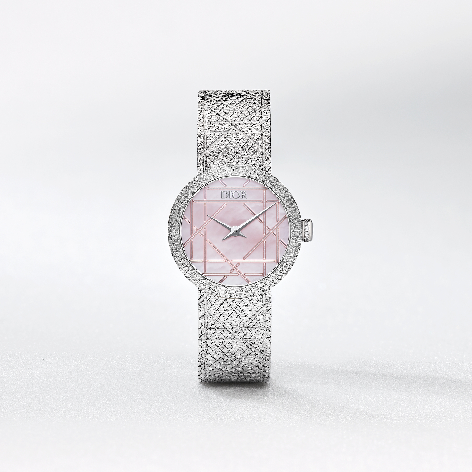 直径 25 毫米,钢、粉色珍珠母贝和钻石