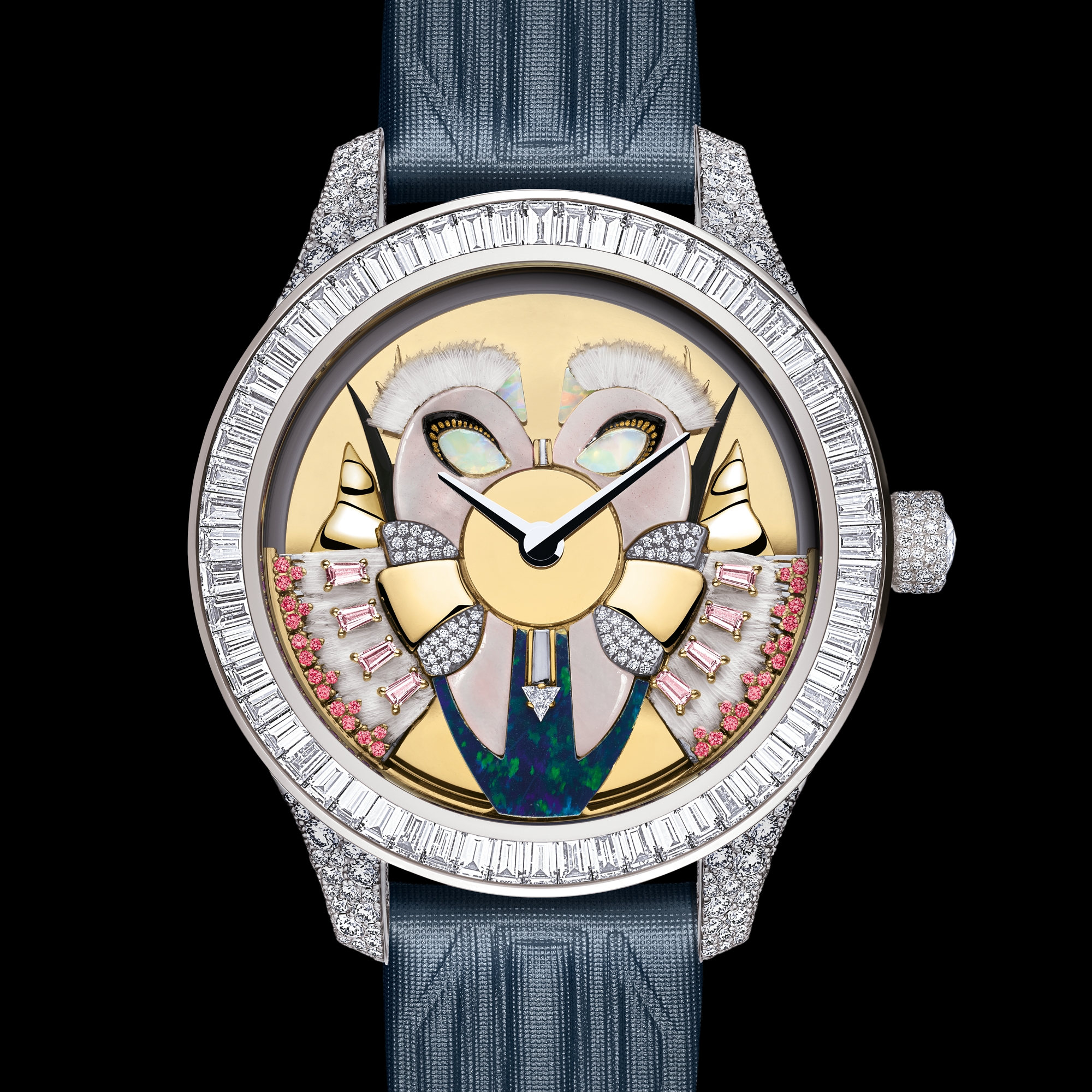 Dior 奢华舞会礼服采用丝缎、罗缎和塔夫绸装饰,而 Dior Grand Bal 系列腕表加入金丝线、网眼织物、桑蚕丝、羽毛、石子甚至甲虫翅膀点缀,与礼服相映生辉。制表工艺科技创新,彰显女性魅力。精致的用料和绚丽的色彩,与 Dior 先生魂牵梦绕的梦幻舞会相呼应,激发我们步入舞池的热情。