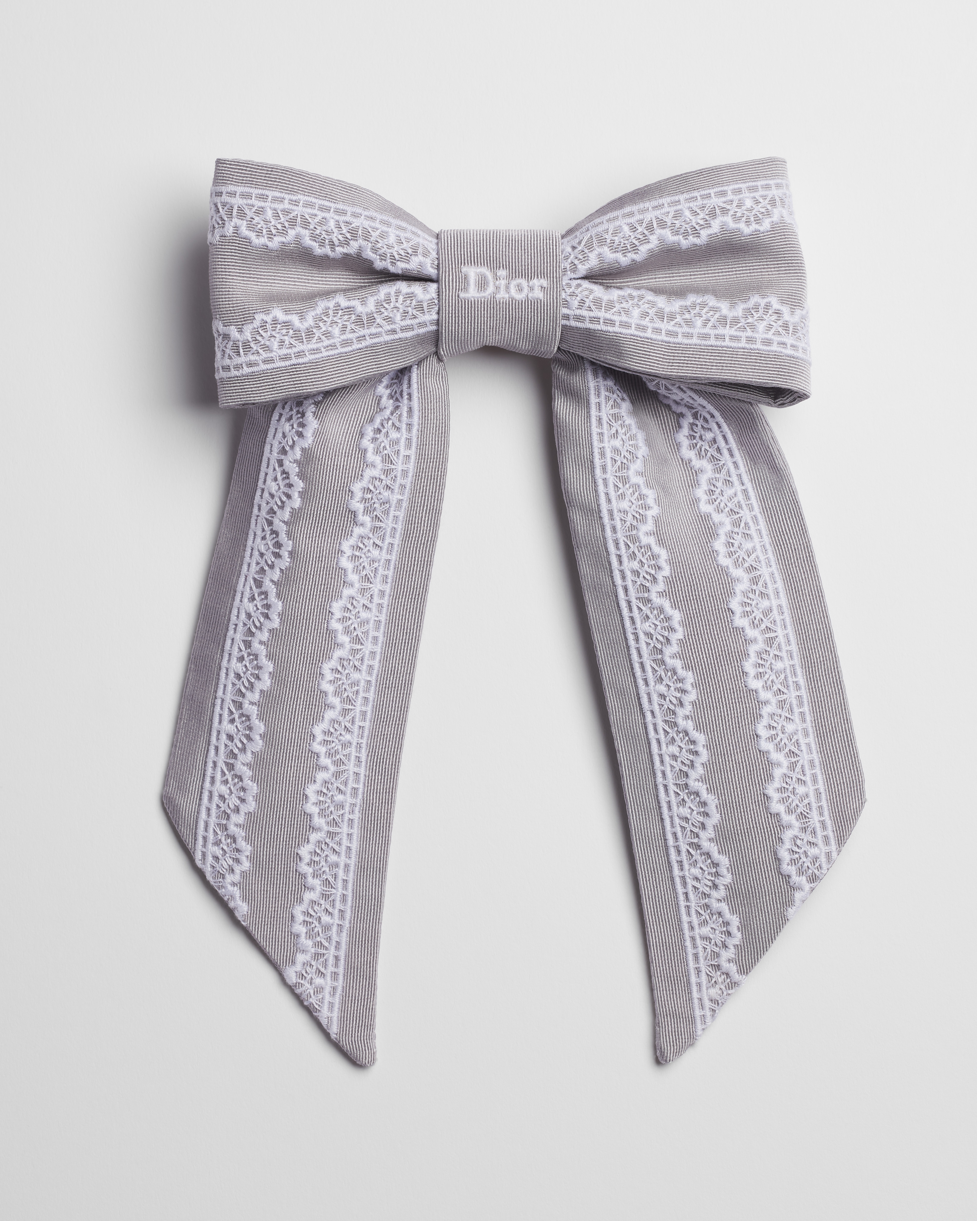 •  海军蓝色罗缎效果科技面料和白色刺绣