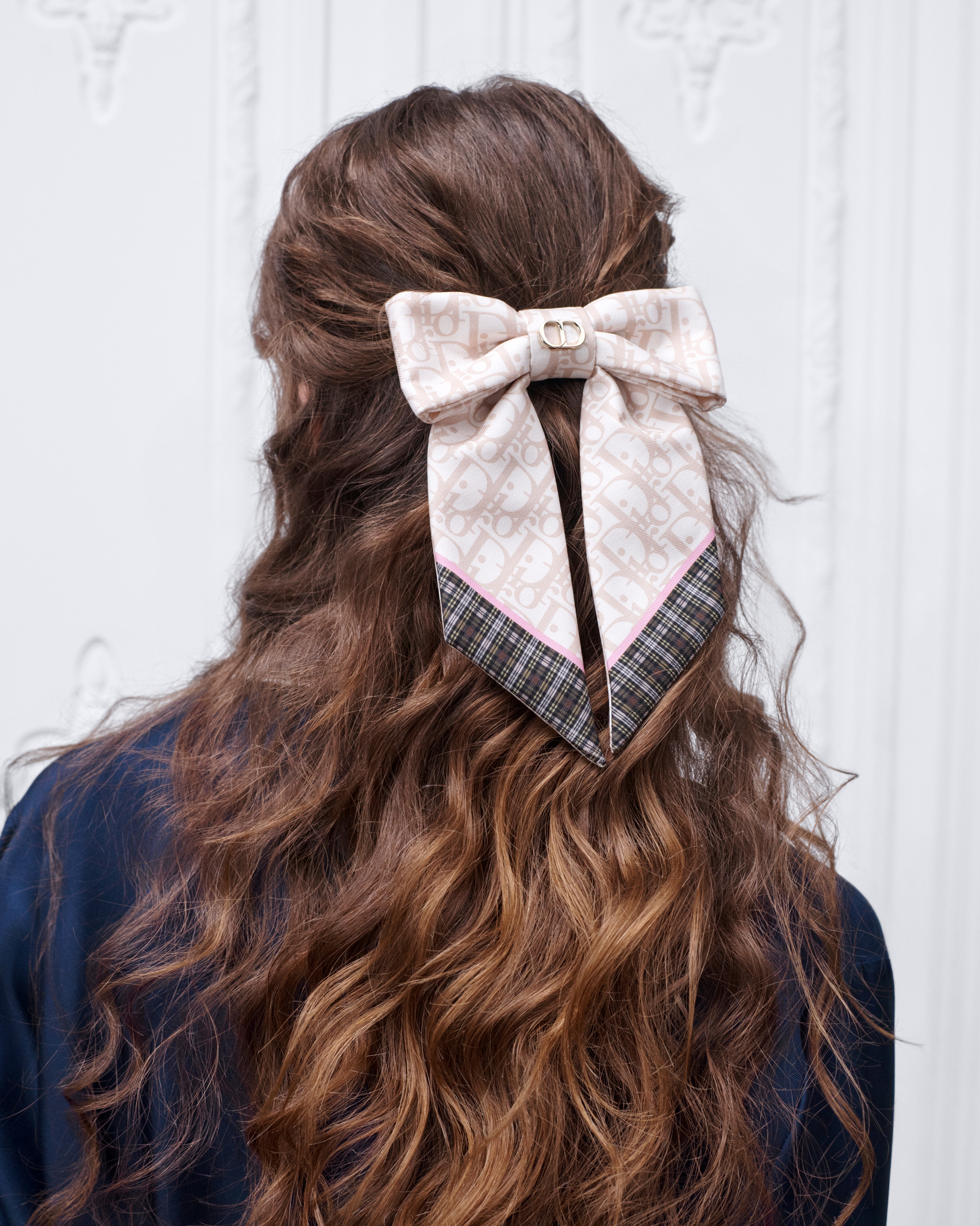 桑蚕丝斜纹面料米色 Dior Infini Tartan 图案