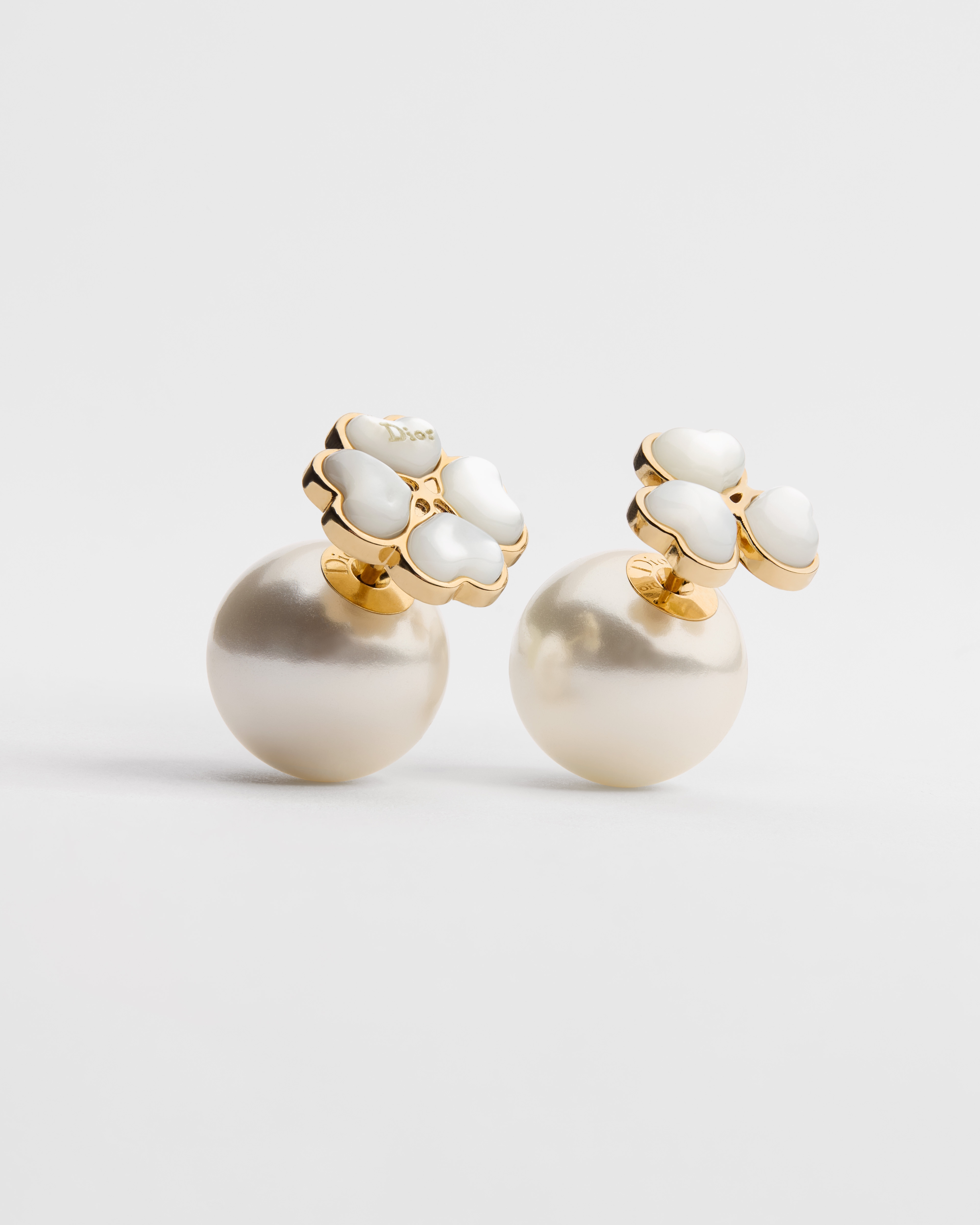 金色饰面金属、白色树脂珠饰和珍珠母贝装饰