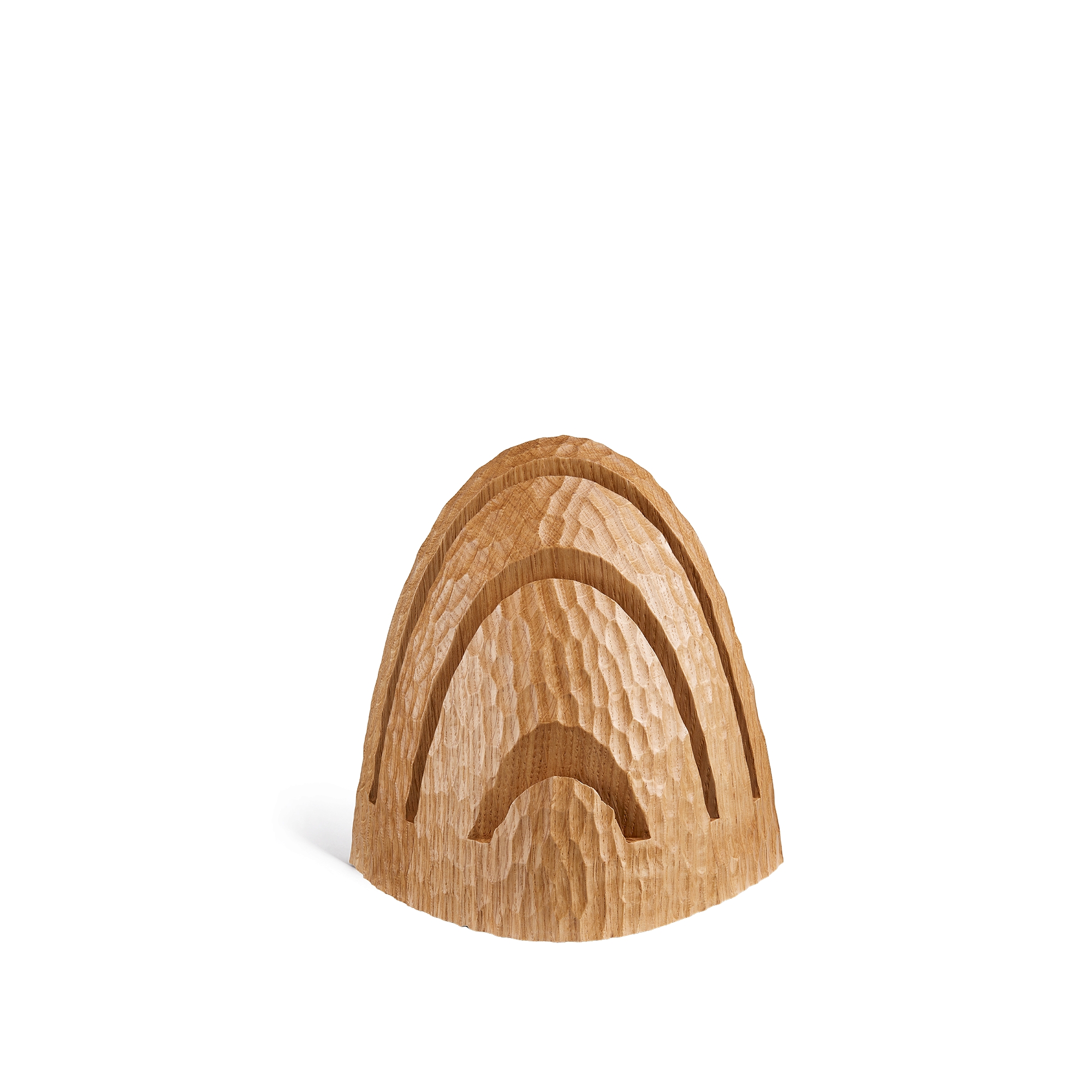 *该办公配件系列包含两个收纳器、一个纸镇、两个纸品收纳盒和两个书挡,采用自然色和染色橡木制作。