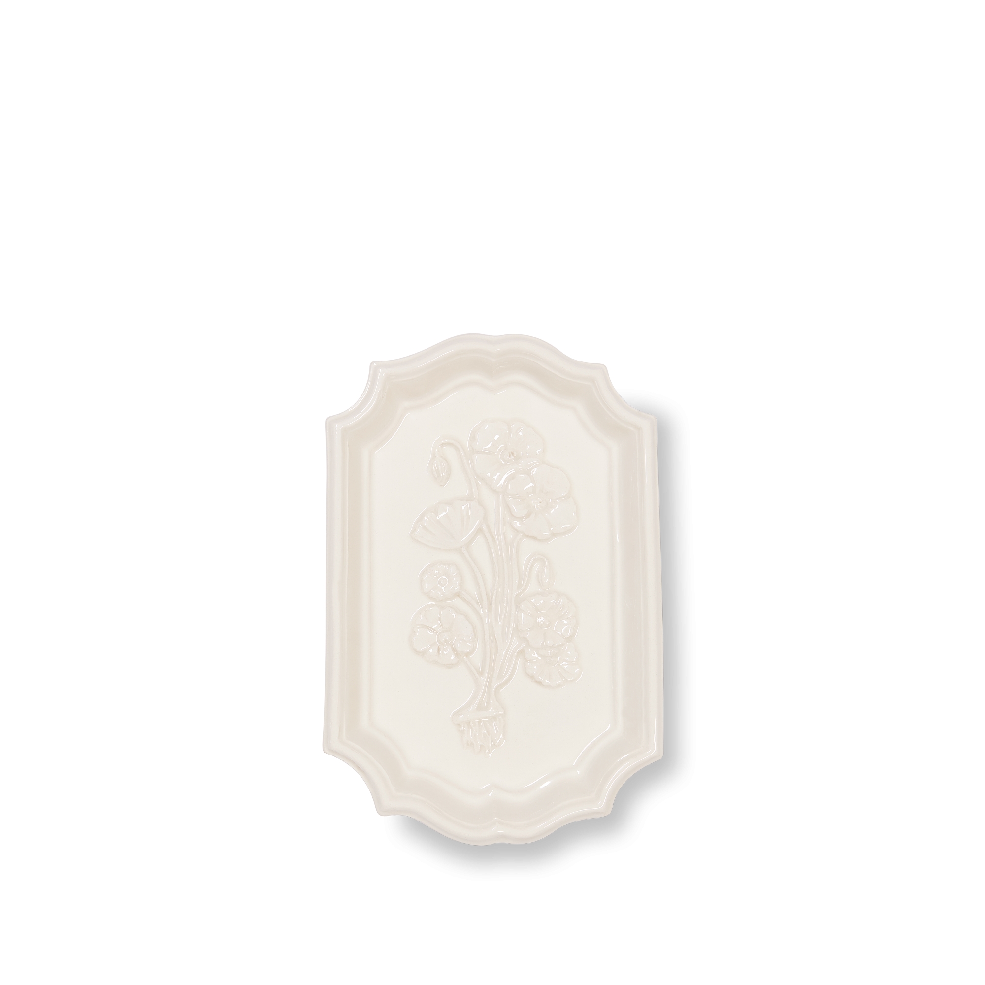 这款装饰托盘来自科迪莉娅·德卡斯特兰 (Cordelia de Castellane) 倾情呈献的 Flower Couture 系列,宛若充满诗意的植物标本,彰显经典的 Dior 美学风格。采用陶瓷精心制作,饰以精美的虞美人花与飘逸饰带交织的图案。可为餐桌增添高订气息,亦可与 Flower Couture 系列的其他单品搭配,打造配套家居风格,展现 Dior 的植物标本合集。