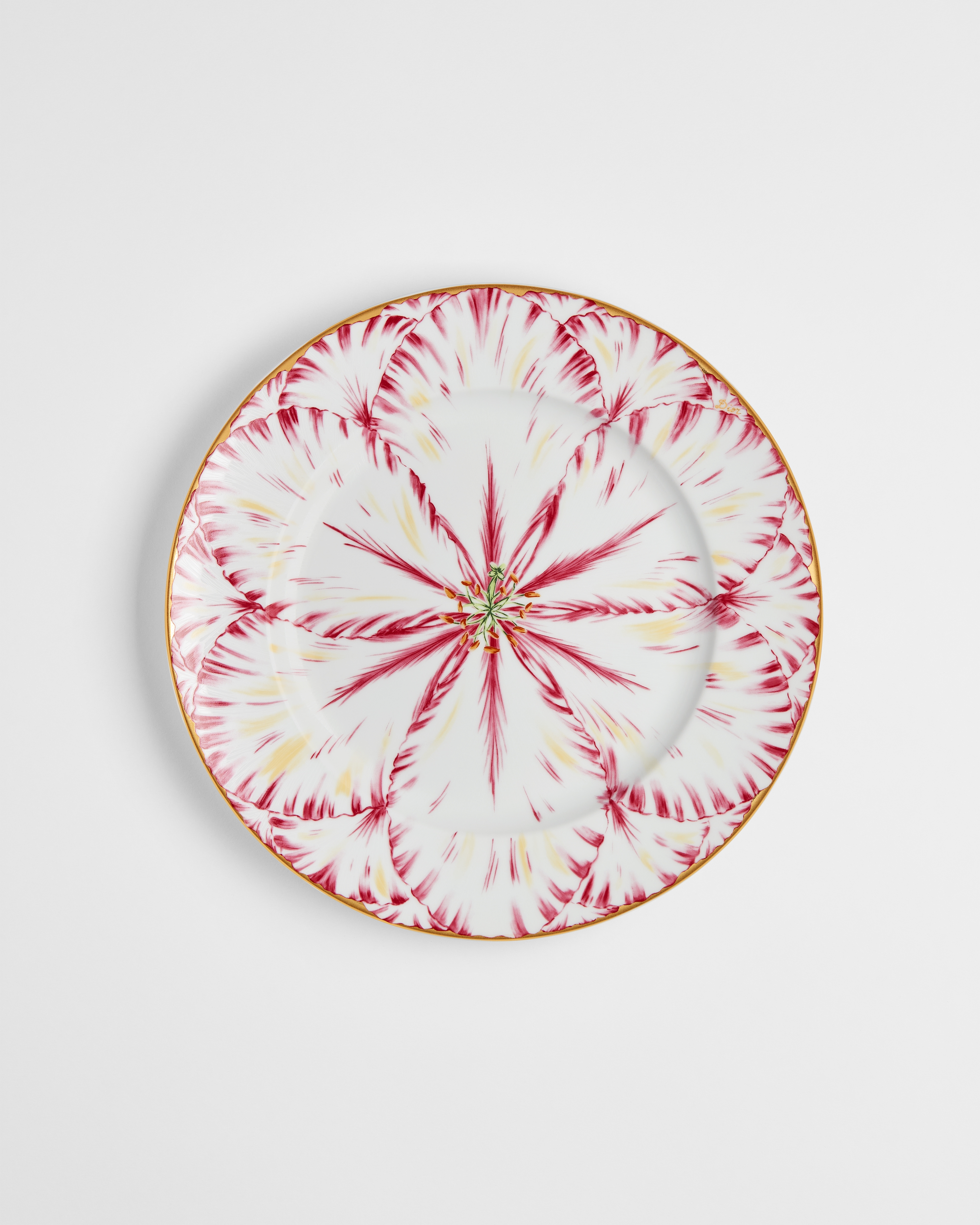 这款餐盘来自 Champs de Tulipes 系列,致敬 Dior 先生设计的 Tulipe 轮廓和象征爱与新生的精致郁金香。采用瓷精心制作,饰以金色调提升格调,搭配优雅的粉色花瓣,打造精美的诗意效果。可为餐桌增添一抹耀眼的气息,亦可与该系列的其他单品搭配,以美妙花卉致敬生活艺术和待客之道。