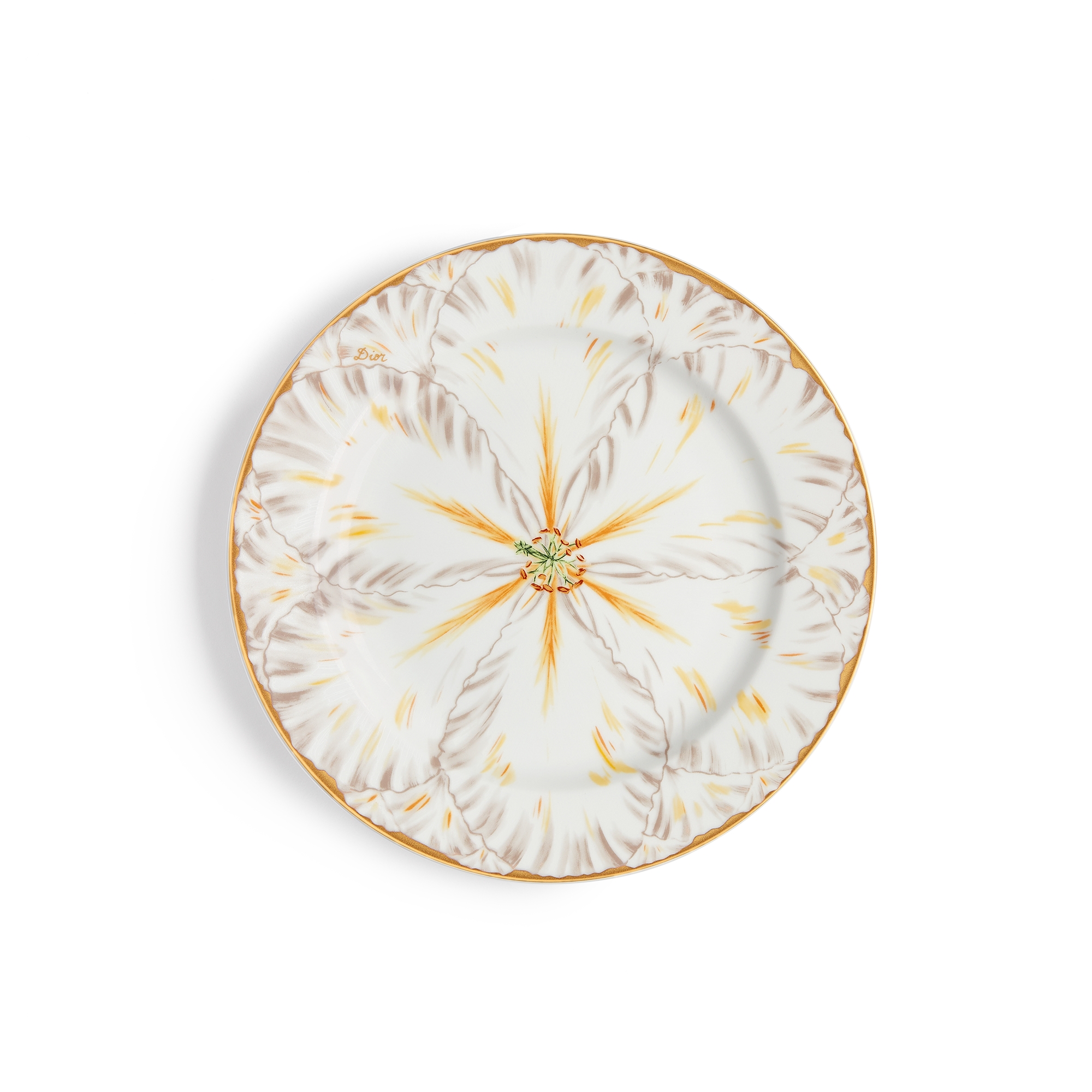 •  Dior 与 Alexia Lignon 联名,瓷搭配绿色和金色调 Champs de Tulipes 图案