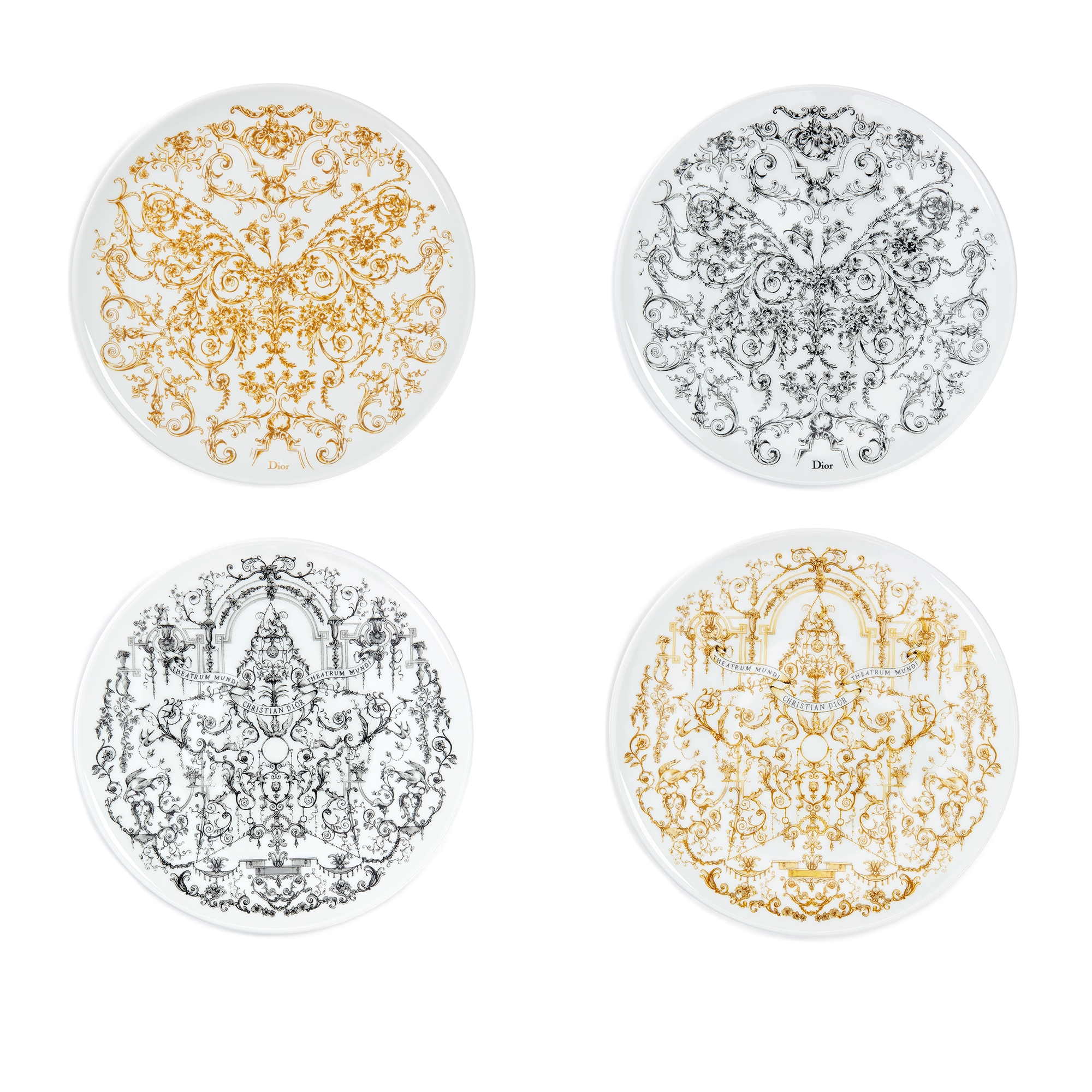 白色瓷质金色调 Dioresque Stella 图案和黑色蝴蝶图案