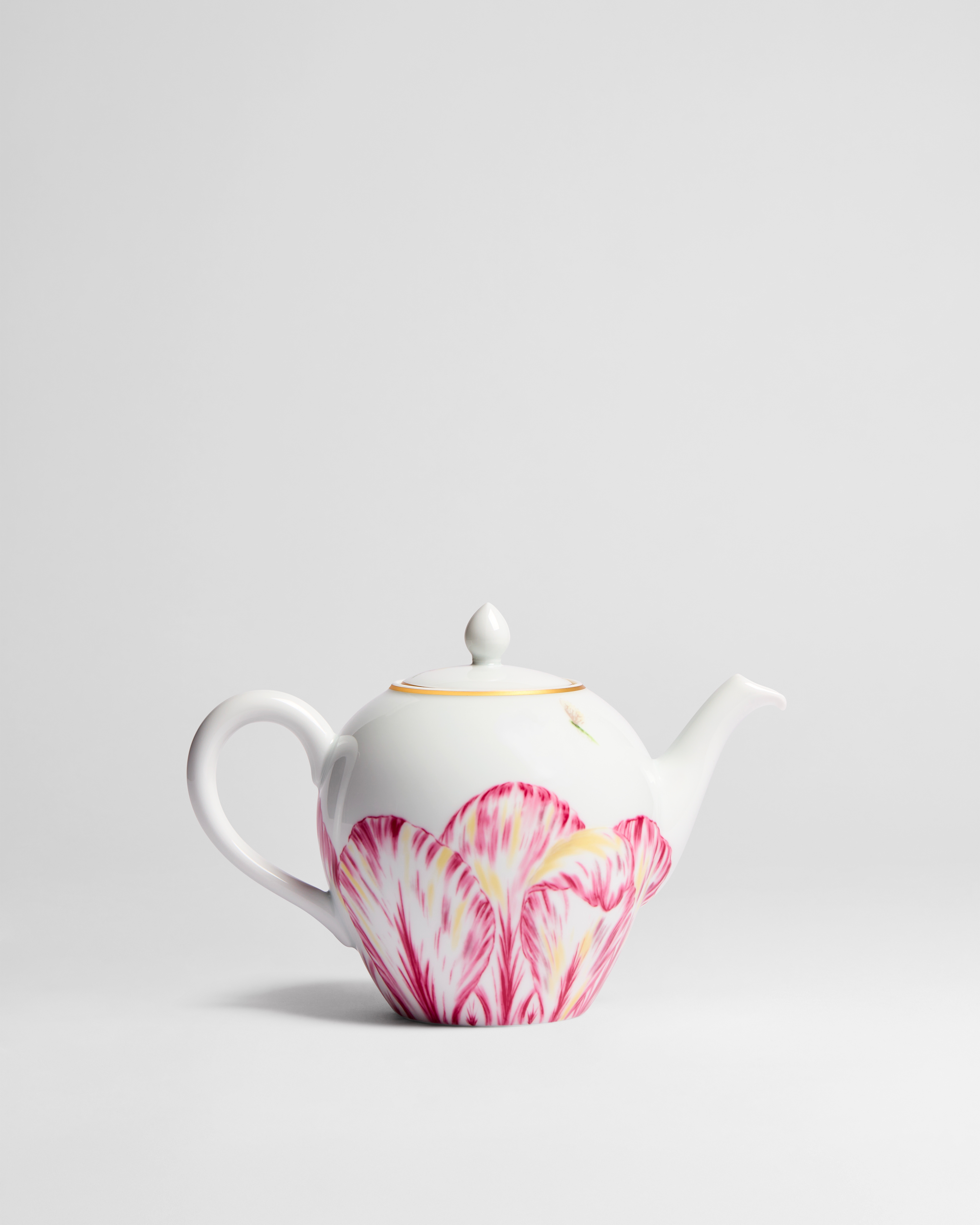 这款茶壶来自 Champs de Tulipes 系列,致敬 Dior 先生设计的 Tulipe 轮廓和象征爱与新生的精致郁金香。采用瓷精心制作,饰以金色调提升格调,搭配优雅的粉色花瓣,打造精美的诗意效果。可为餐桌增添一抹耀眼的气息,亦可与该系列的其他单品搭配,以美妙花卉致敬生活艺术和待客之道。