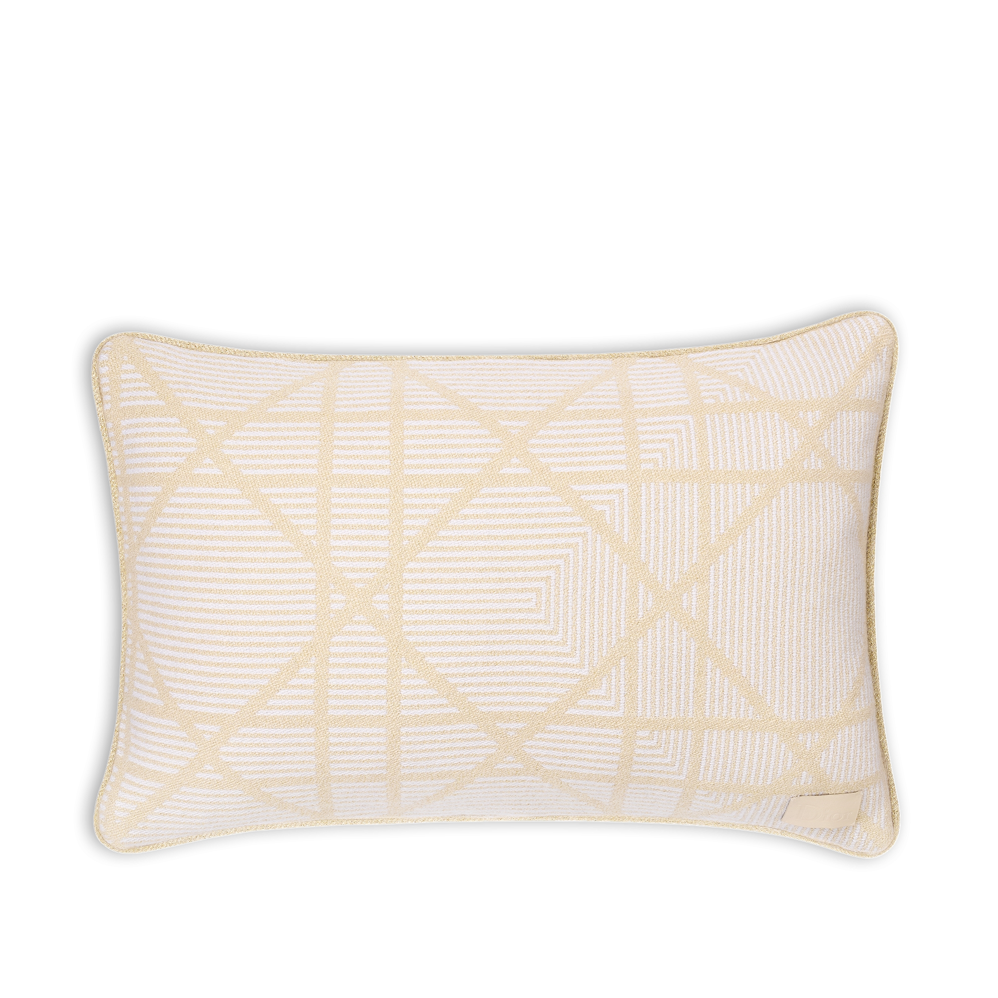 米色绵羊毛混纺提花面料 Optique 藤格纹