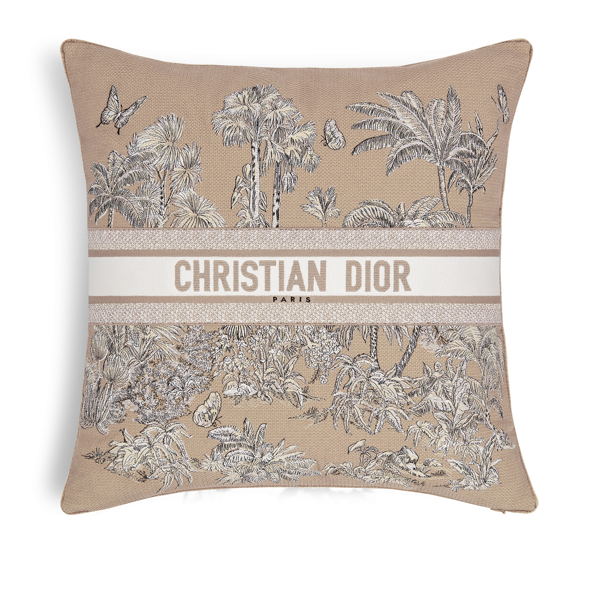 这款正方形靠垫来自 Dioriviera 系列,鲜活灵动,呼应玛丽亚·嘉茜娅·蔻丽 (Maria Grazia Chiuri) 的灵感和创意。采用棉质刺绣面料精心制作,饰以米色和白色 Palms 茹伊印花,重新诠释 Dior 经典图案。可为各式内部装饰提升格调,增添令人愉悦的度假气息,亦可与 Dioriviera 系列的其他单品搭配,打造配套造型,营造阳光明媚的氛围。