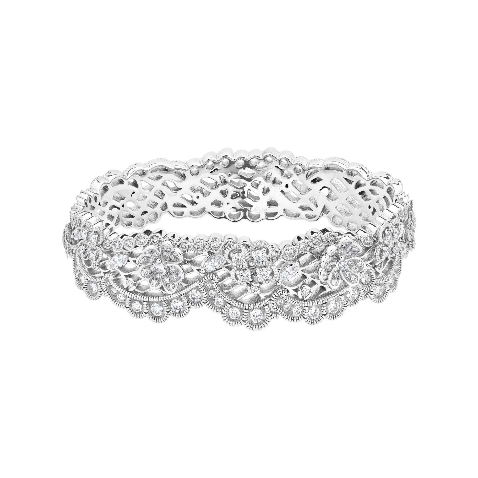 Archi Dior 系列向 Christian Dior 高订工艺致敬。这款单品出自维多利娅·德卡斯特兰 (Victoire de Castellane) 之手,和 Dior Dior Dior 高端珠宝系列一样,灵感源自蕾丝花边。