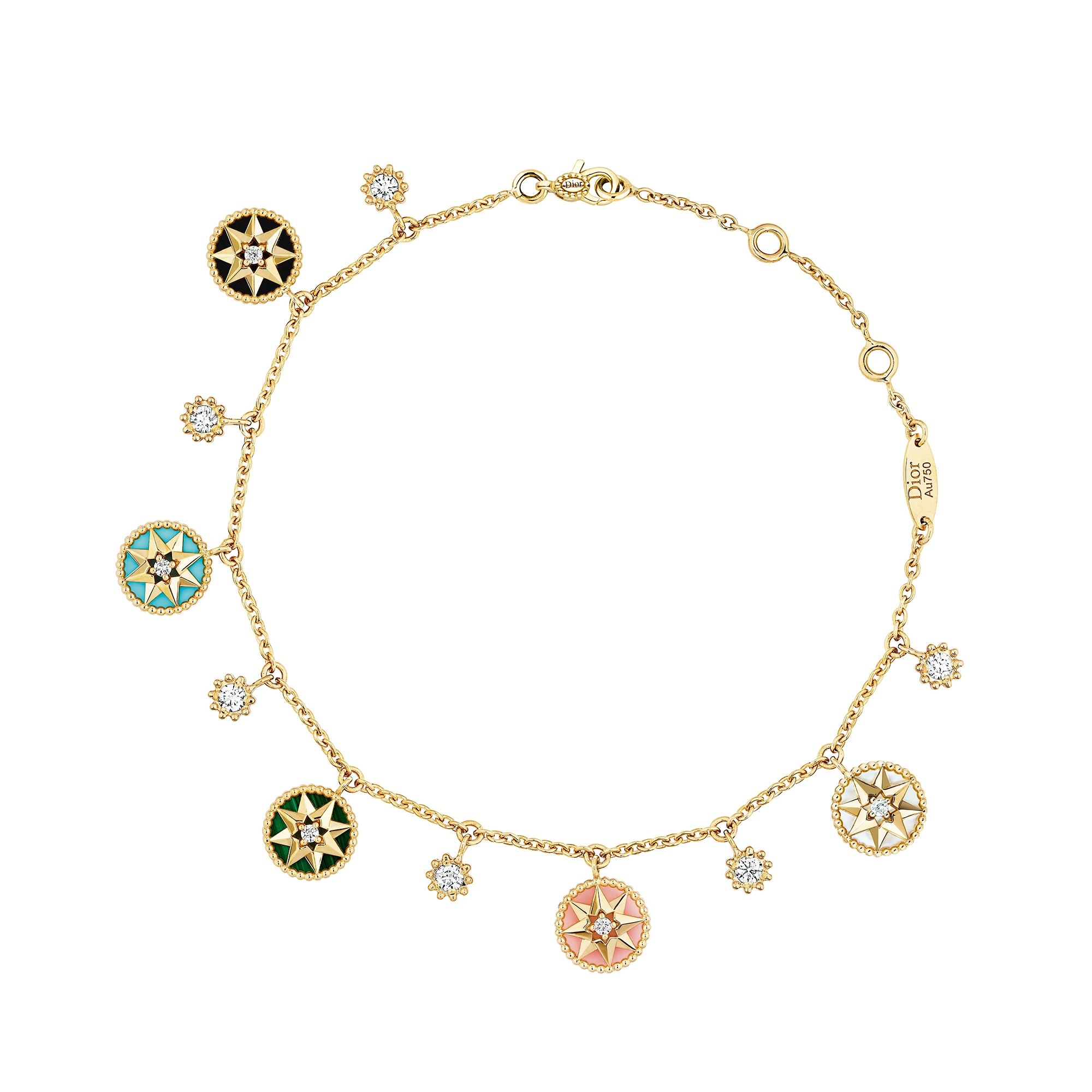 维多利娅·德卡斯特兰 (Victoire de Castellane) 以八芒星造型的罗盘玫瑰重新诠释 Dior 先生的幸运星。图案由一圈珠饰环绕,可在宝石和罗盘玫瑰之间随心切换。