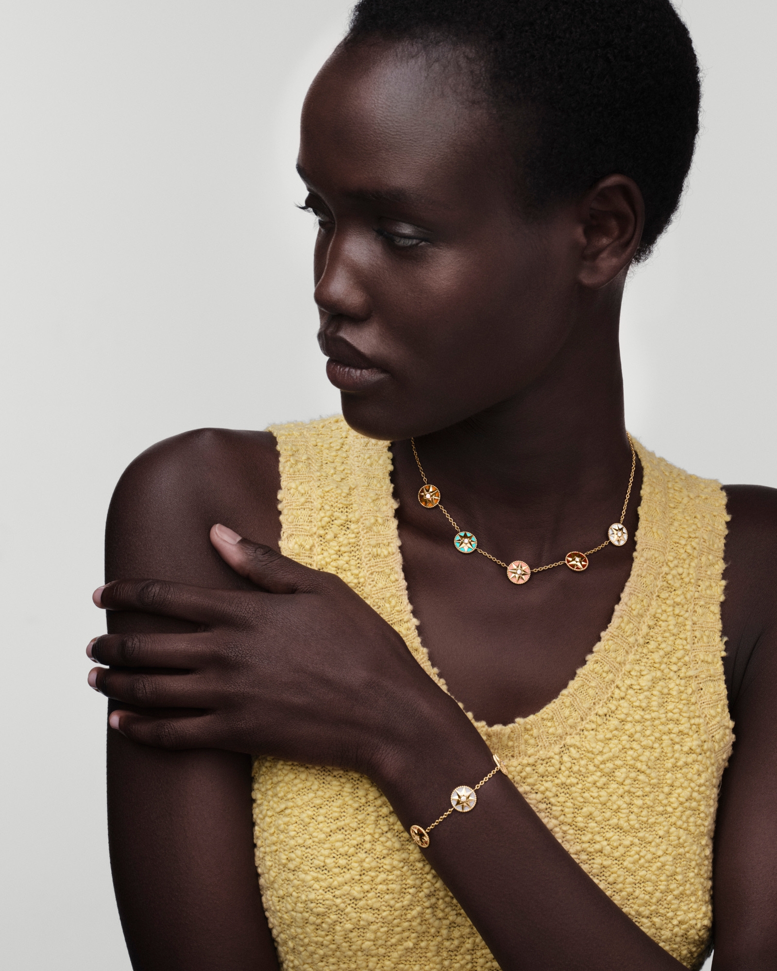 Rose des Vents 手链采用全新配色,璀璨耀眼,搭配五种图案,打造黄色 18K 金版本。明亮而精致的设计,突显宝石的光彩,彰显活泼时尚的美感。