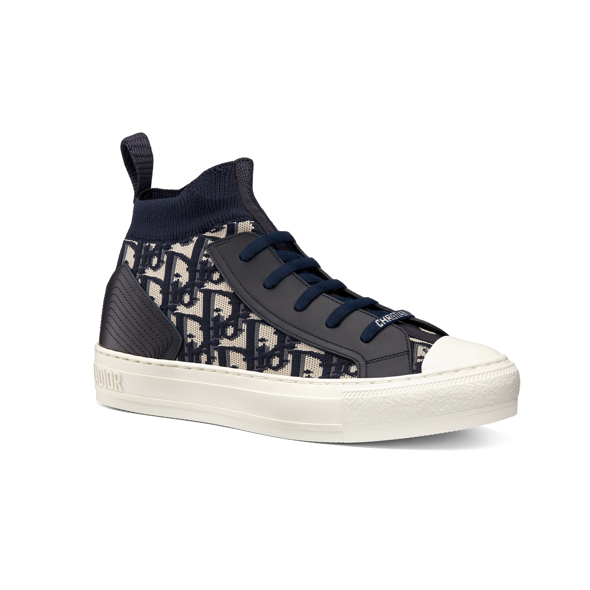 深蓝色科技针织面料和牛皮革 Oblique 印花