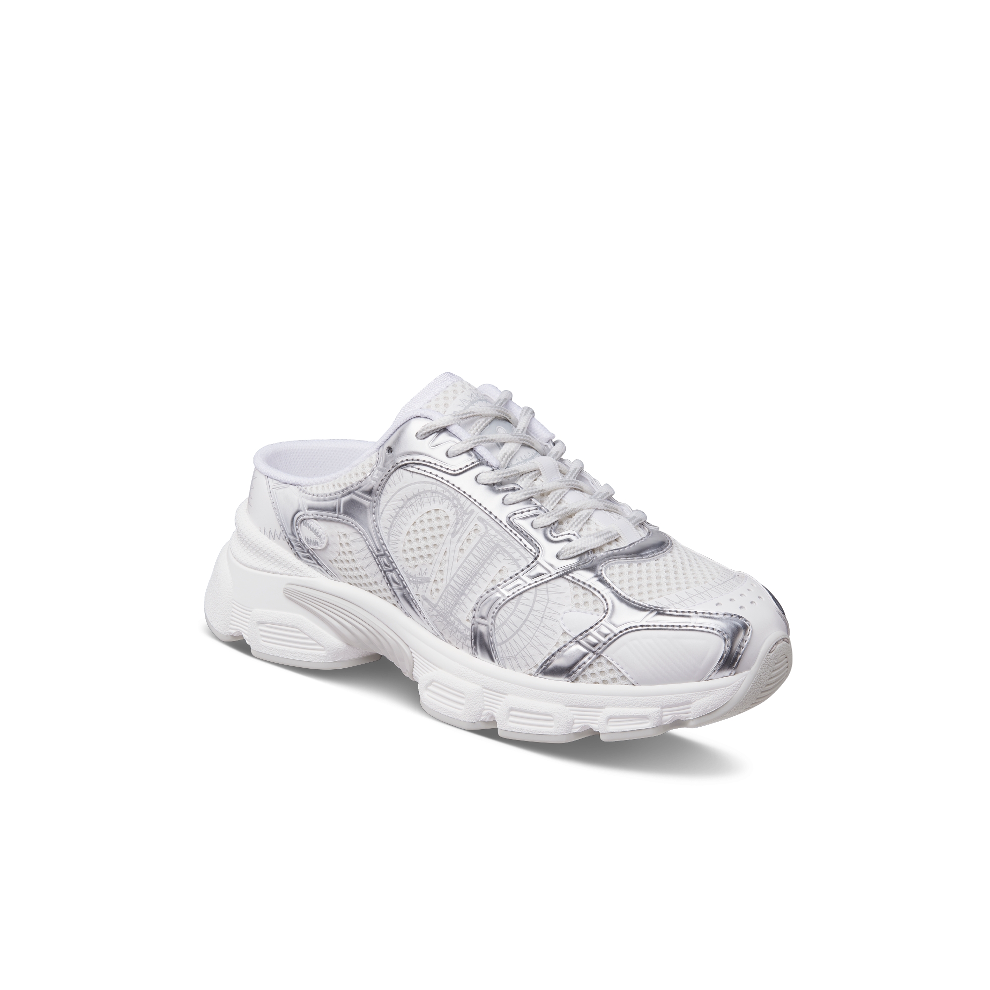 白色网眼织物搭配银色调和白色层压皮革效果镶片