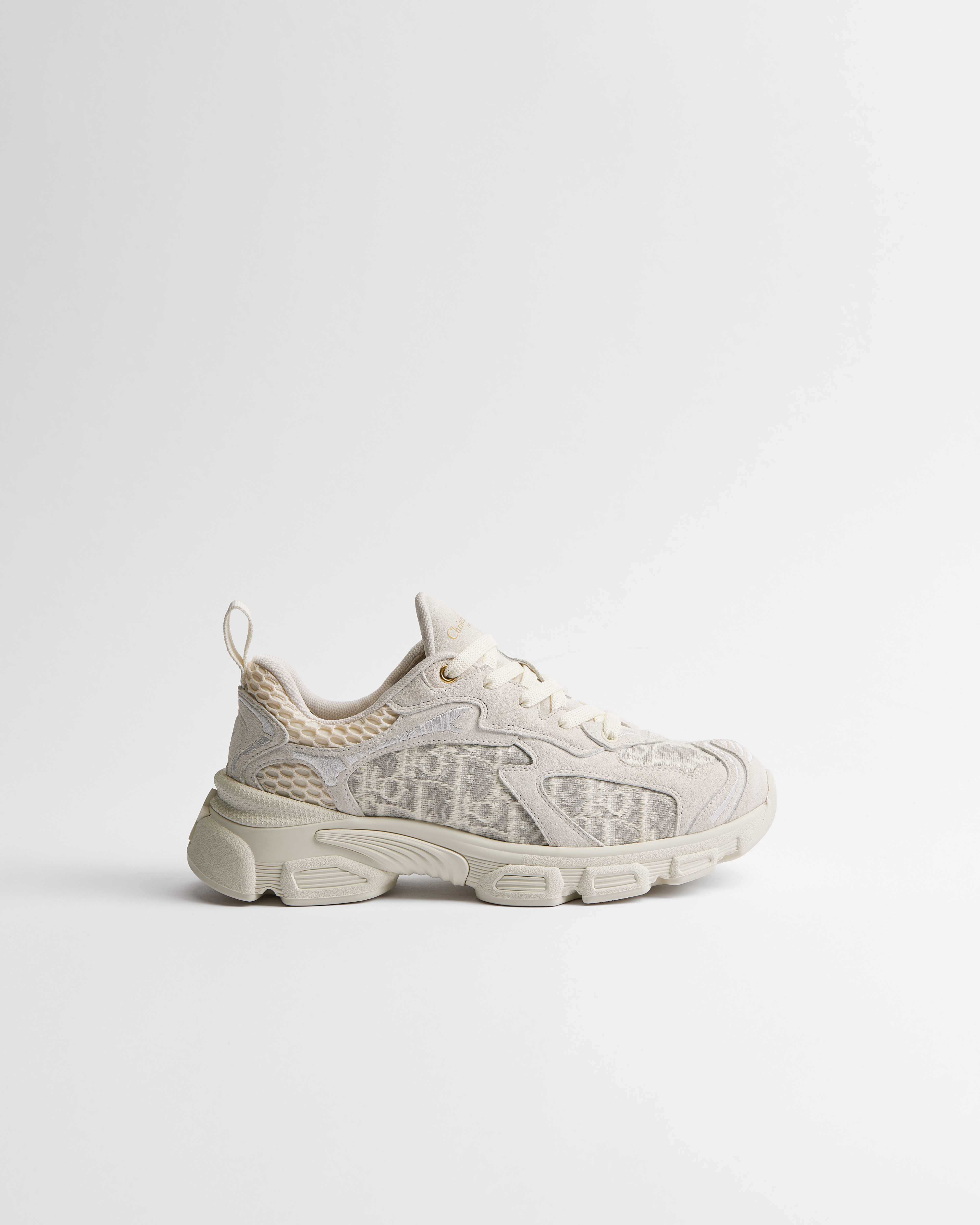 灰色棉质面料白色 Oblique 印花和灰色绒面牛皮革