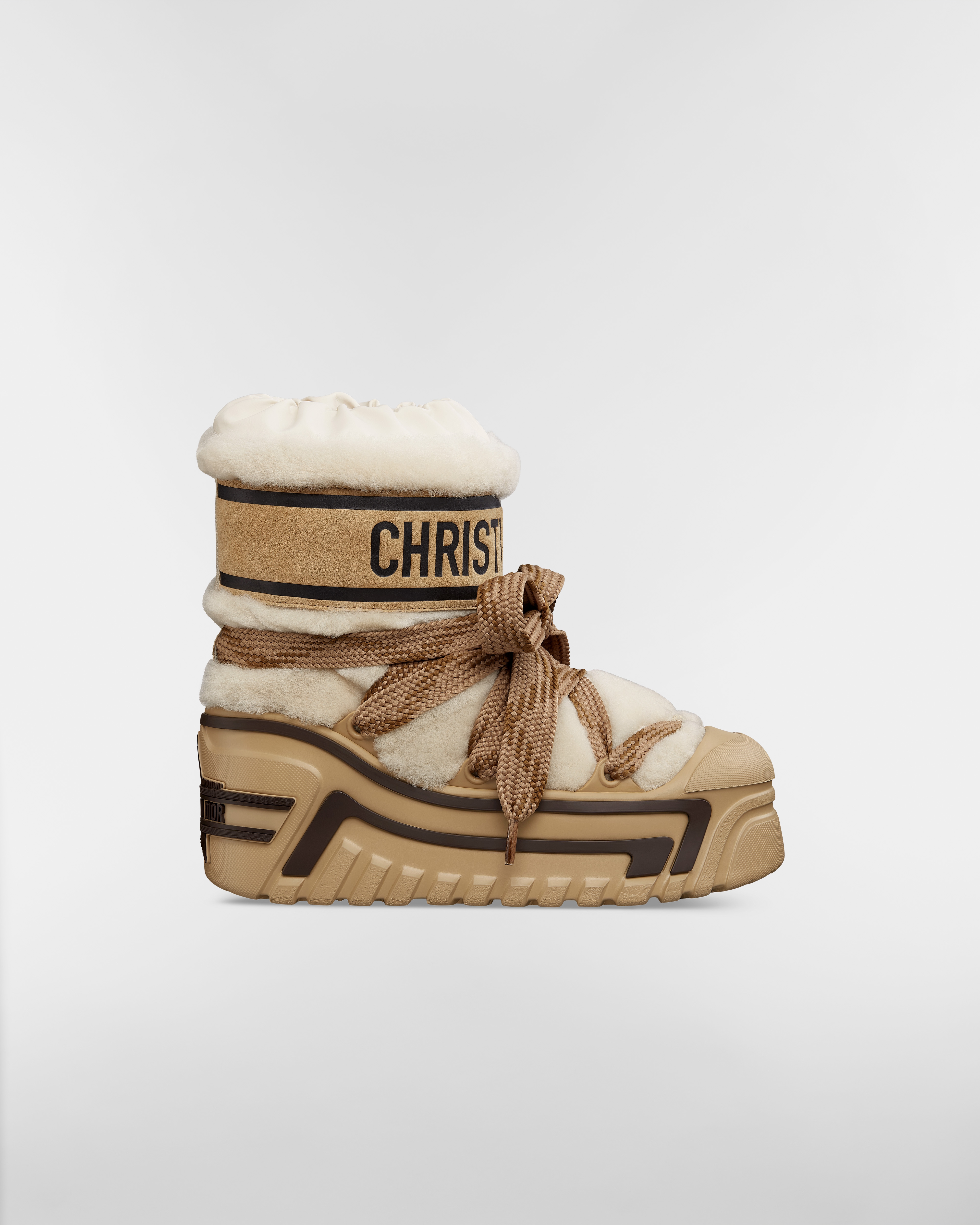 米白色羊皮革皮毛一体和驼色绒面羊皮革