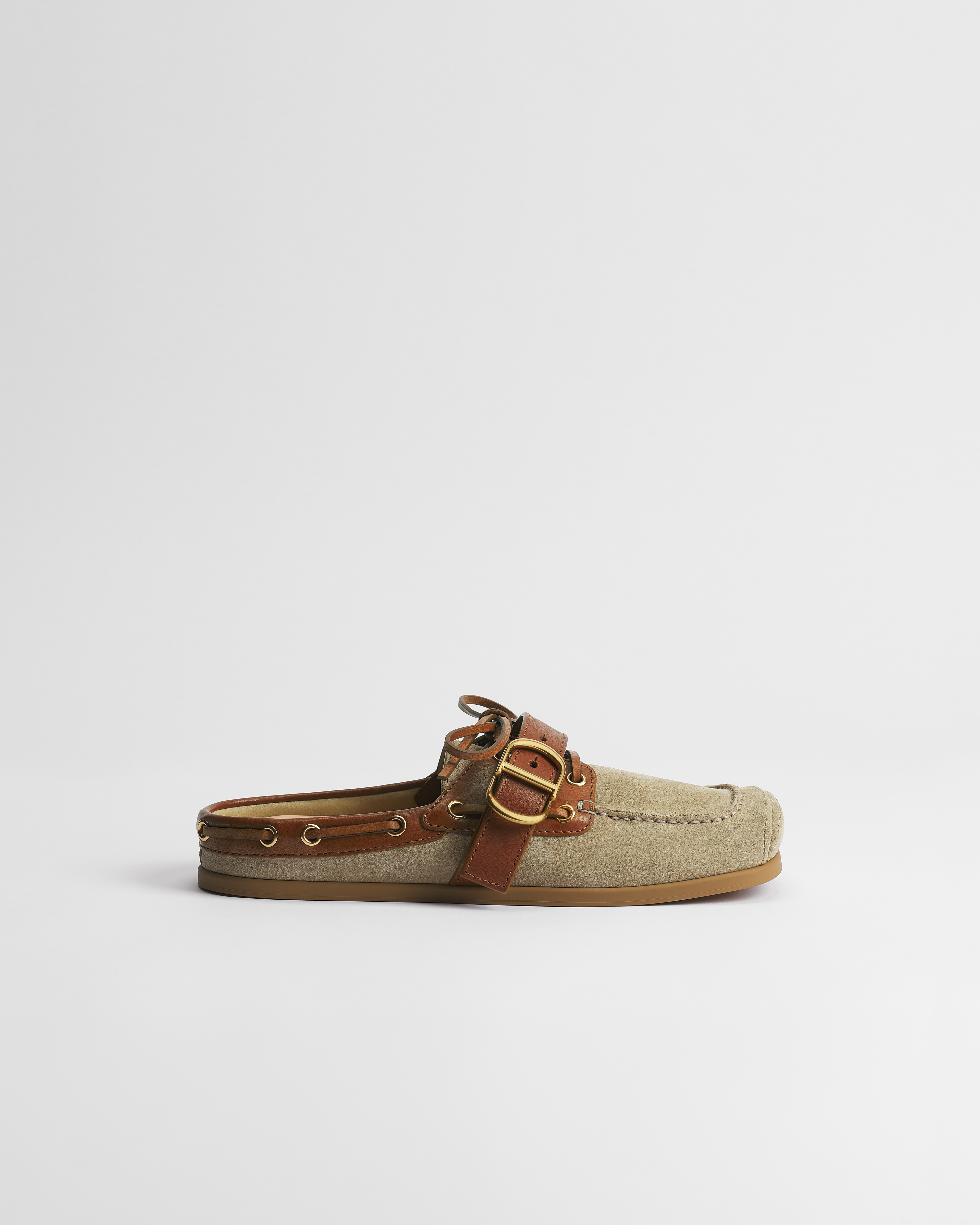 乔纳森·安德森 (Jonathan Anderson) 从航海世界汲取灵感,倾情打造出这款 Dior Voile 穆勒鞋,将优雅与舒适融为一体。采用绒面牛皮革和牛皮革两种材质精心制作,从男装经典标识汲取灵感,突显时尚的方形鞋头和 CD 搭扣,令夏日装扮更加精致。