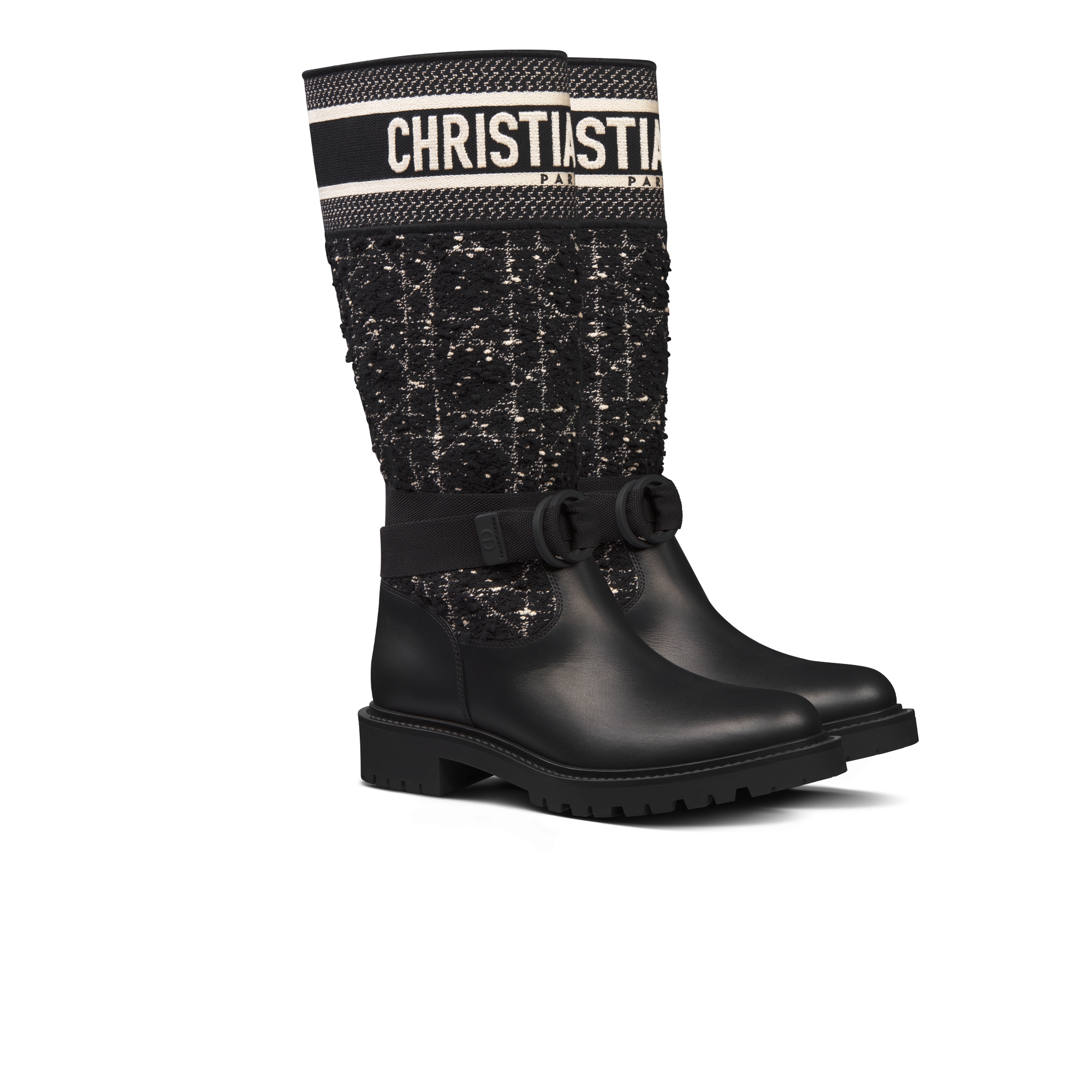 黑色和白色藤格纹粗花呢和黑色牛皮革