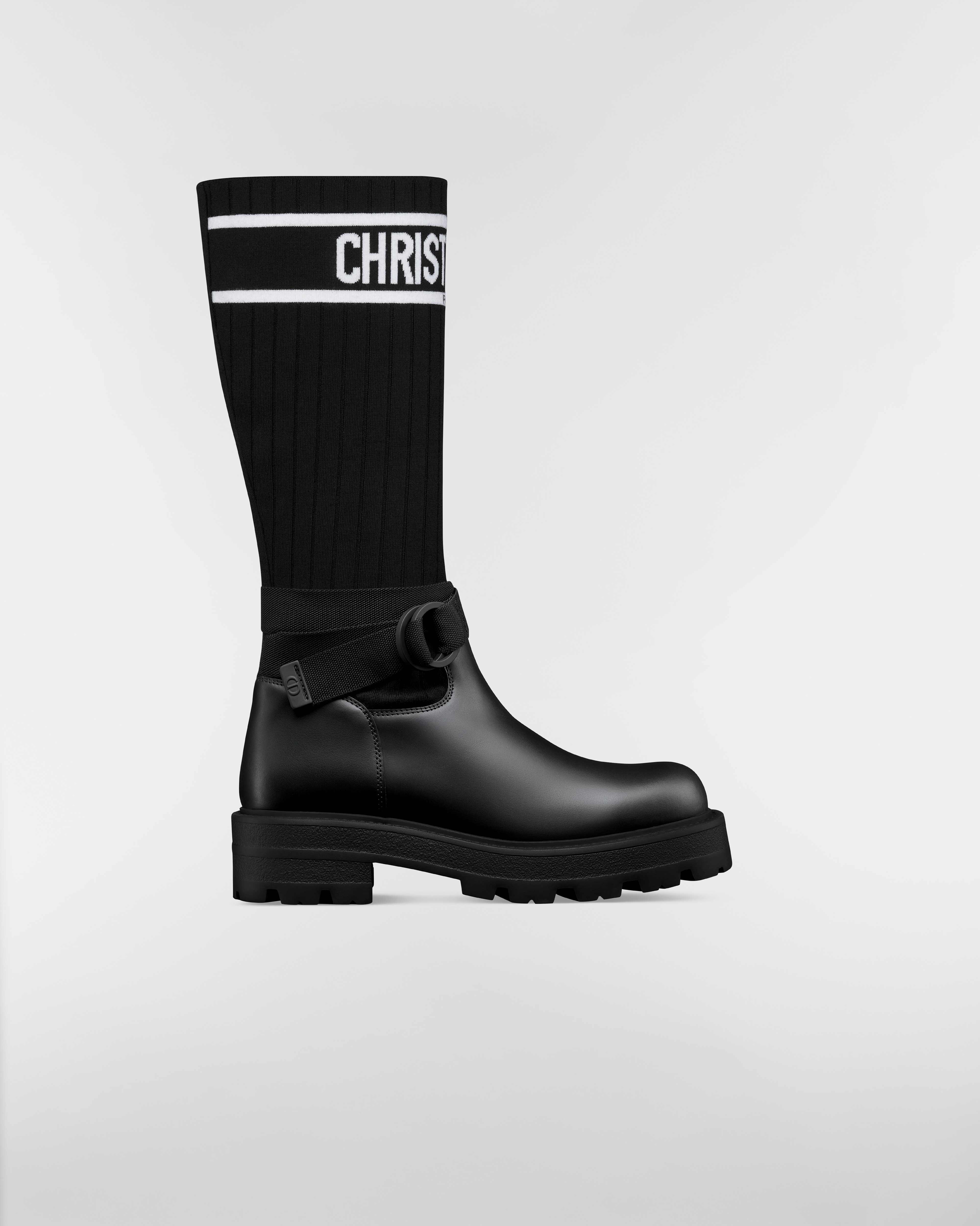 黑色牛皮革搭配黑色和白色科技针织面料