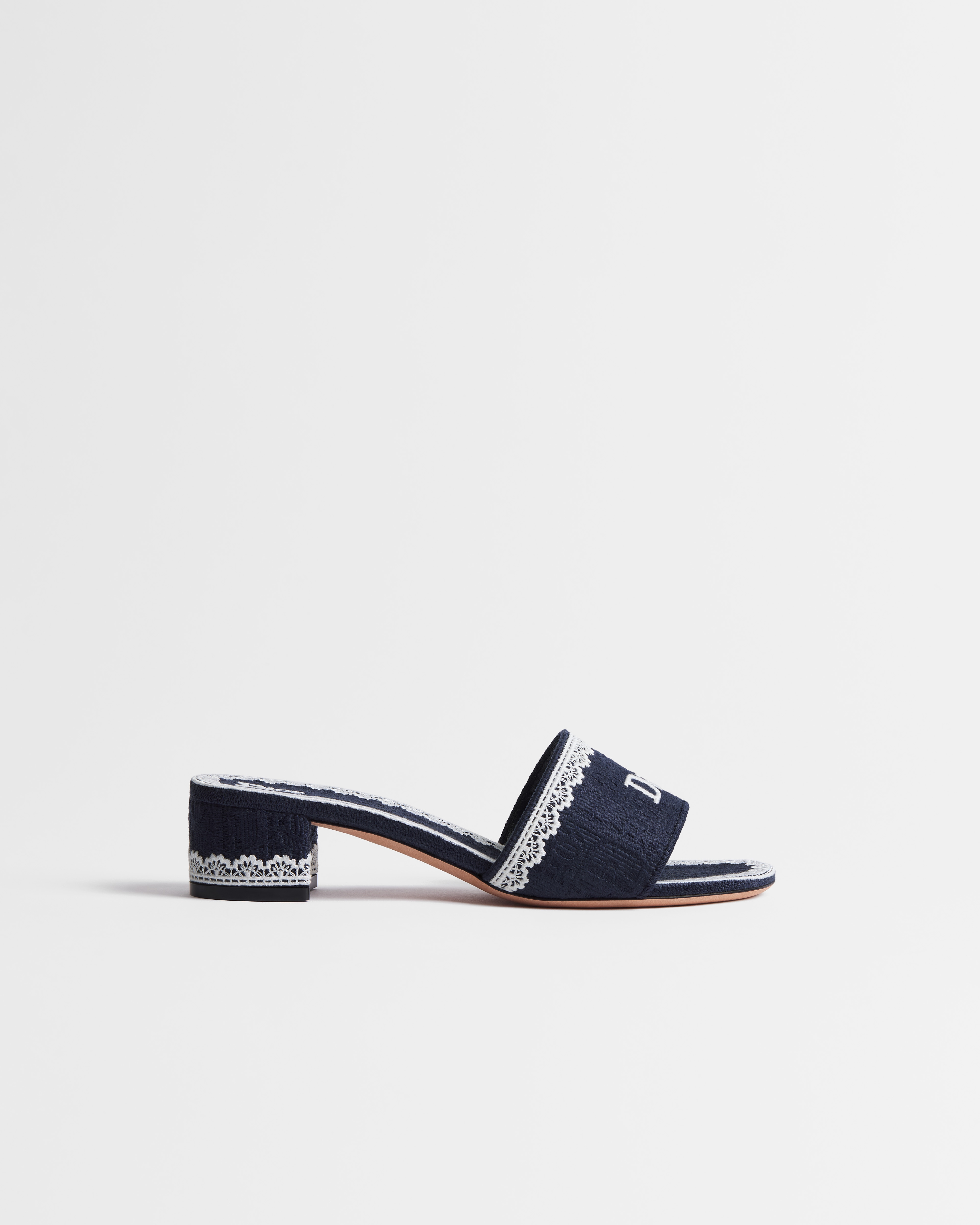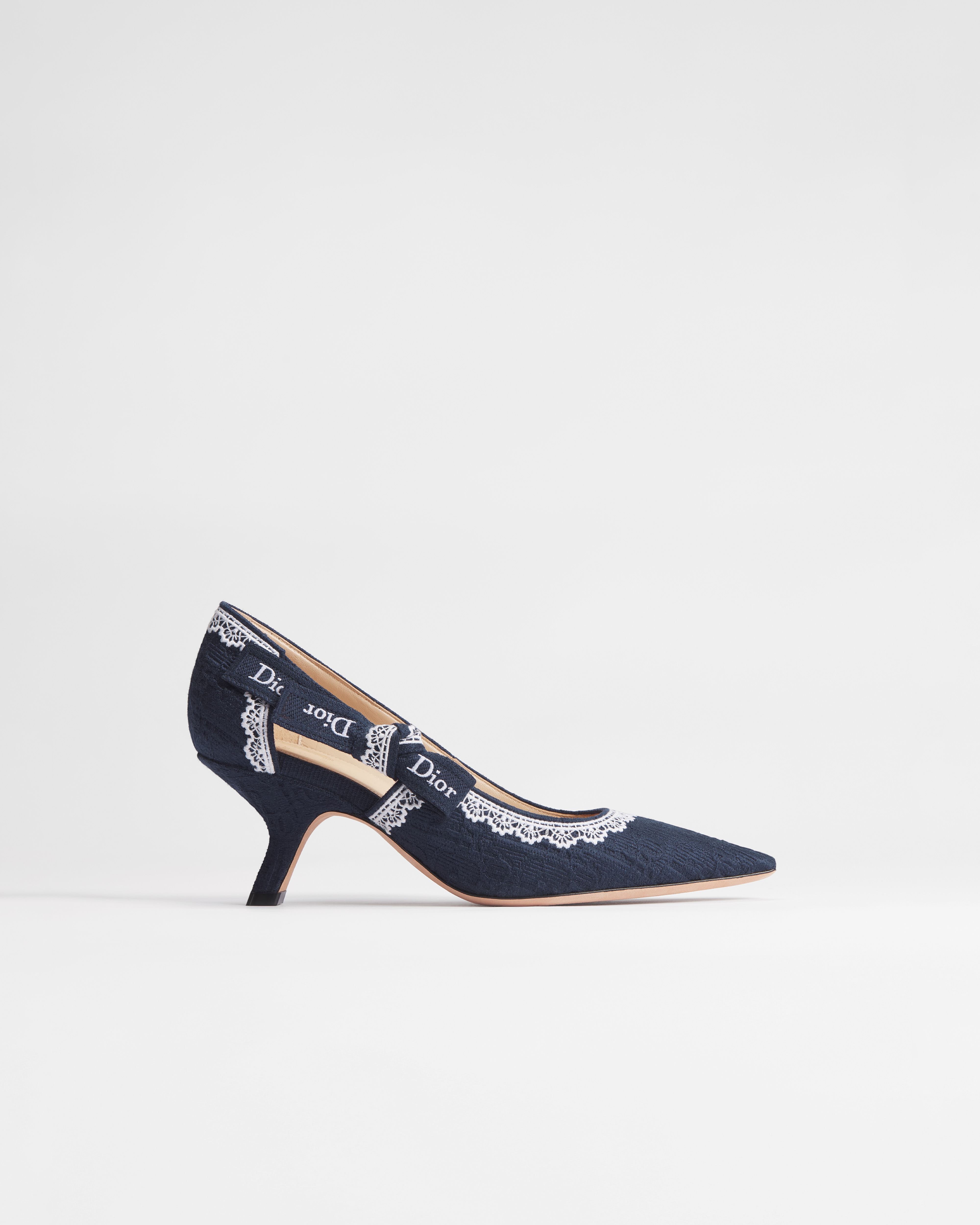 蓝色棉质面料 Oblique 印花和白色蕾丝