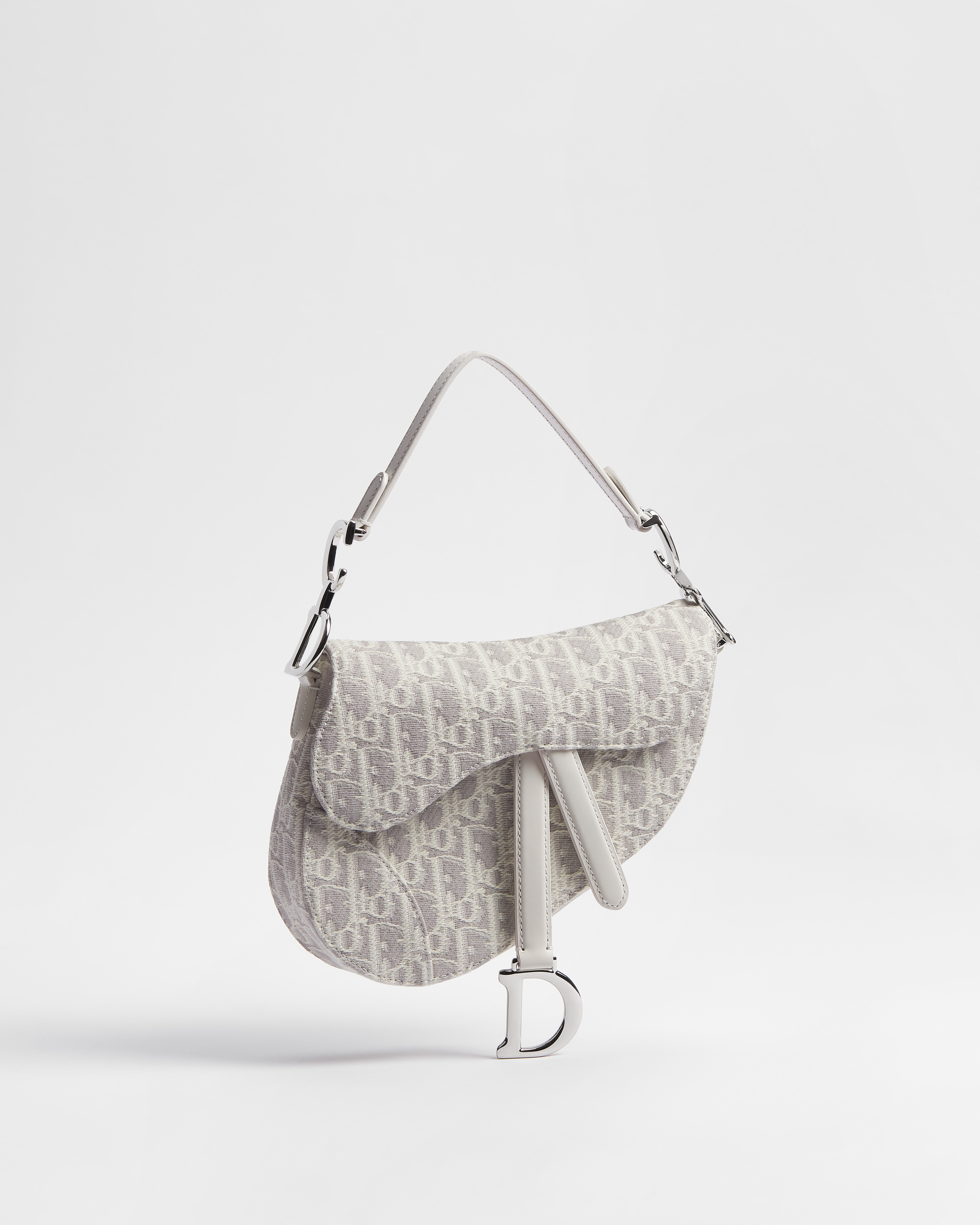 这款经典马鞍包精巧实用。采用奶白色和灰色 Oblique 印花面料等材质精心制作,马鞍翻盖搭配点缀以马镫 D 形吊饰的饰带和磁性拉带,彰显经典设计,顶部手柄两侧饰以银色饰面金属 CD 标志。小号款式,搭配可调节、可拆卸的细肩带,可手提或斜挎。
