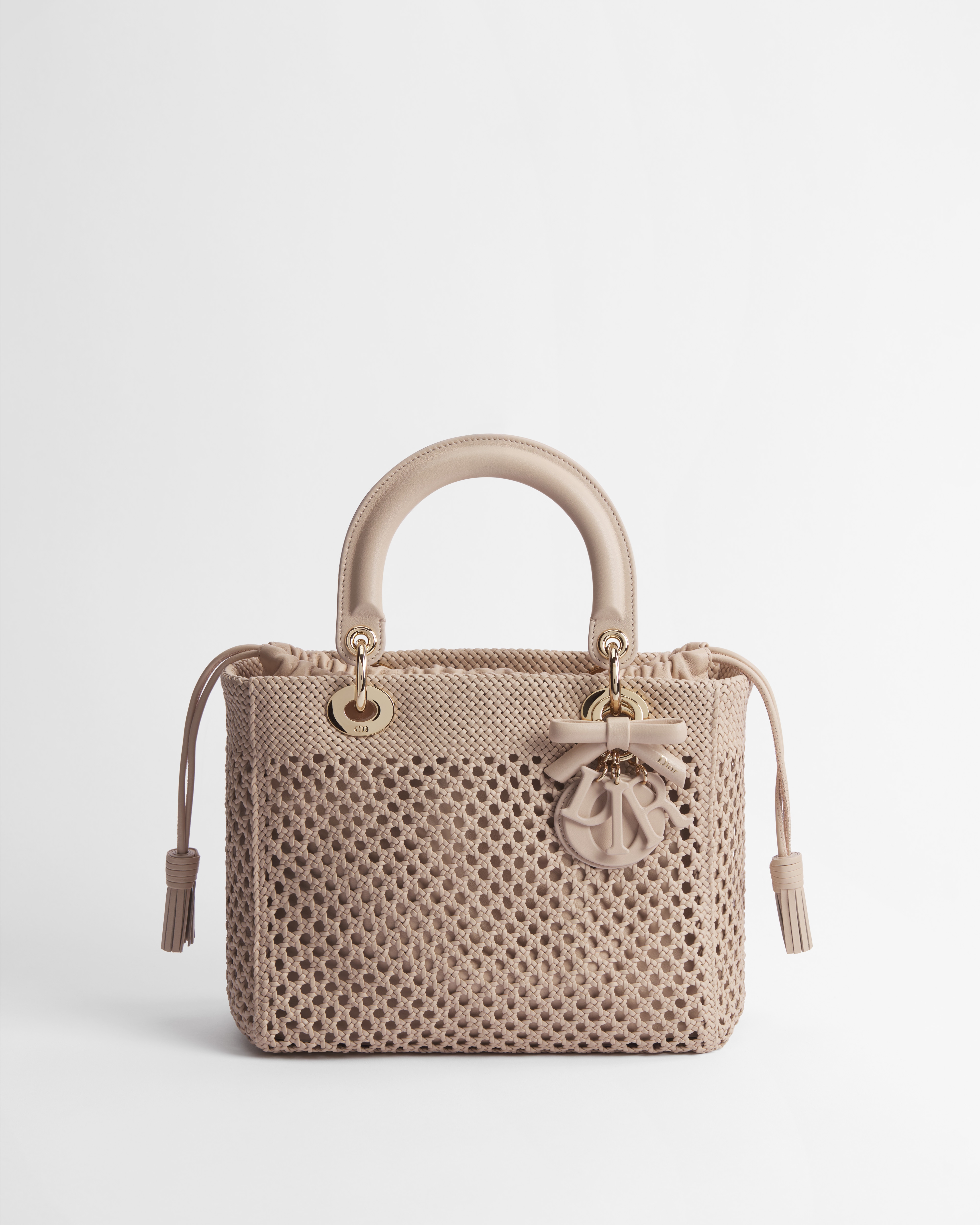 这款 Lady Dior 手袋以乔纳森·安德森 (Jonathan Anderson) 的艺术创意重新诠释,采用手工编织皮革精心制作,突显高雅格调和非凡的精湛工艺。D.I.O.R. 吊饰以同色调皮革材质焕新演绎,搭配可拆卸皮革蝴蝶结,更显精致。中号款式,可手提,彰显典雅气质。