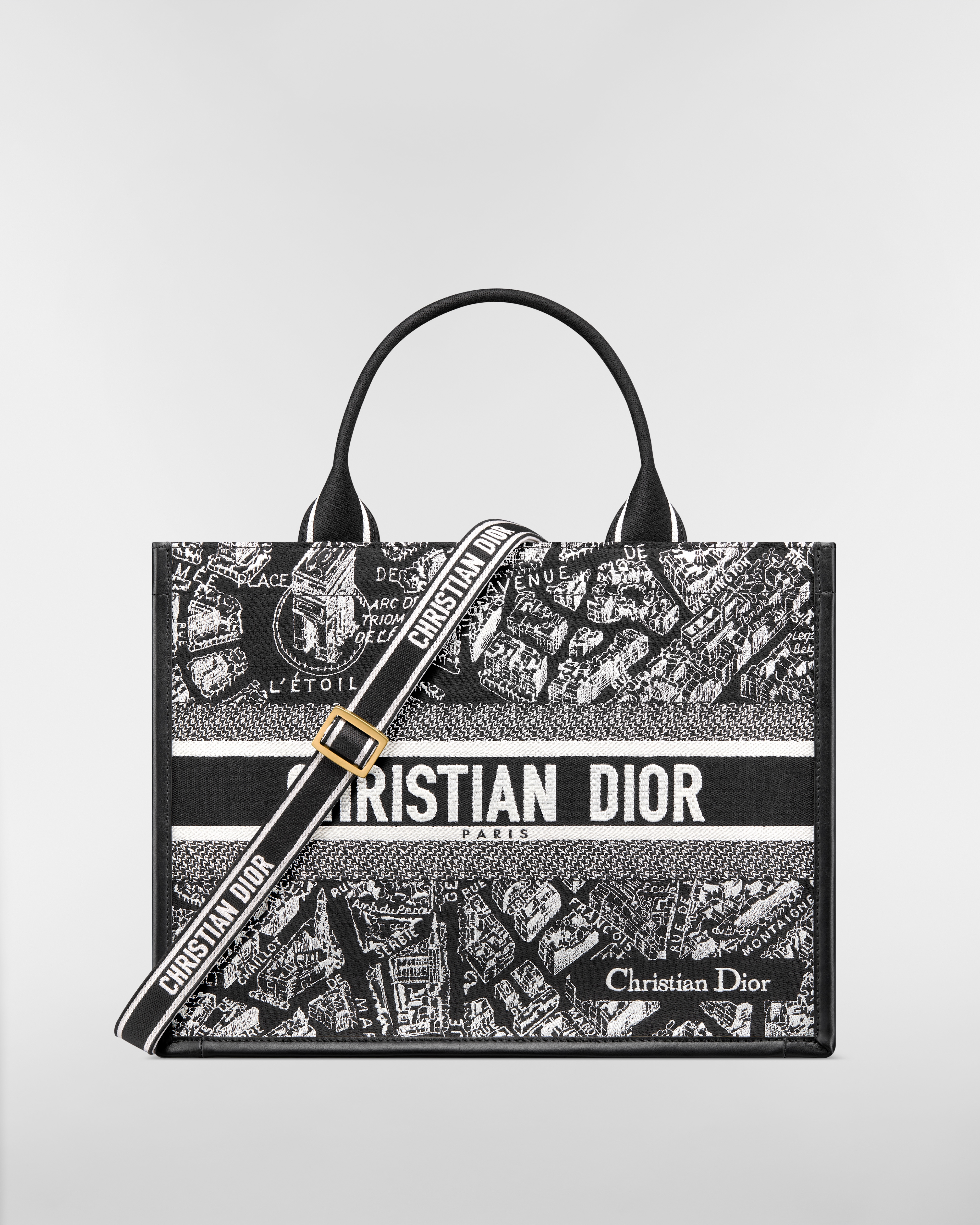 黑色和白色 Plan de Paris 图案刺绣搭配黑色牛皮革(36.5 x 28 x 16.5 厘米)