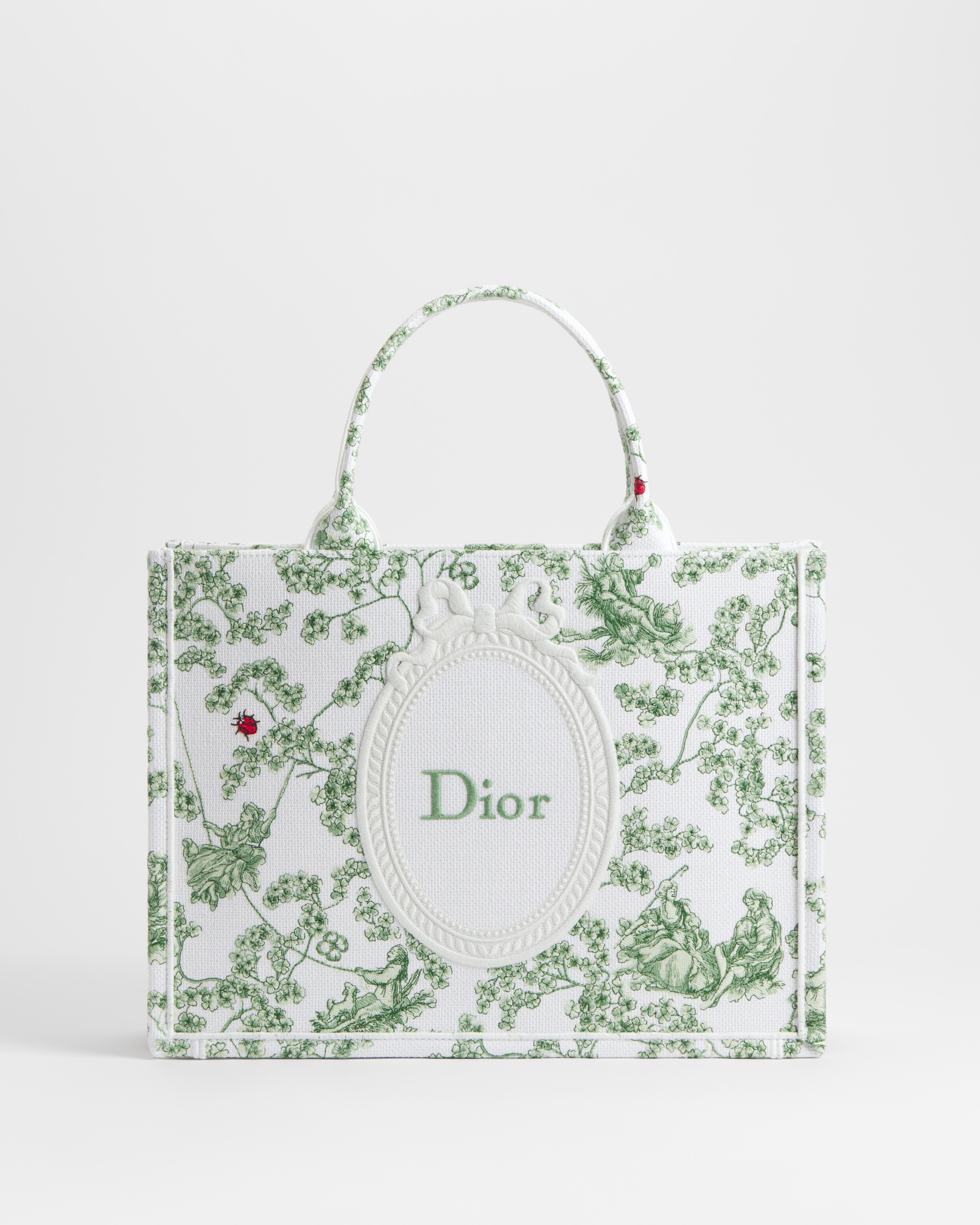 绿色面料多色四叶草茹伊印花刺绣和白色 Dior Médaillon 标志(36 x 27.5 x 16.5 厘米)