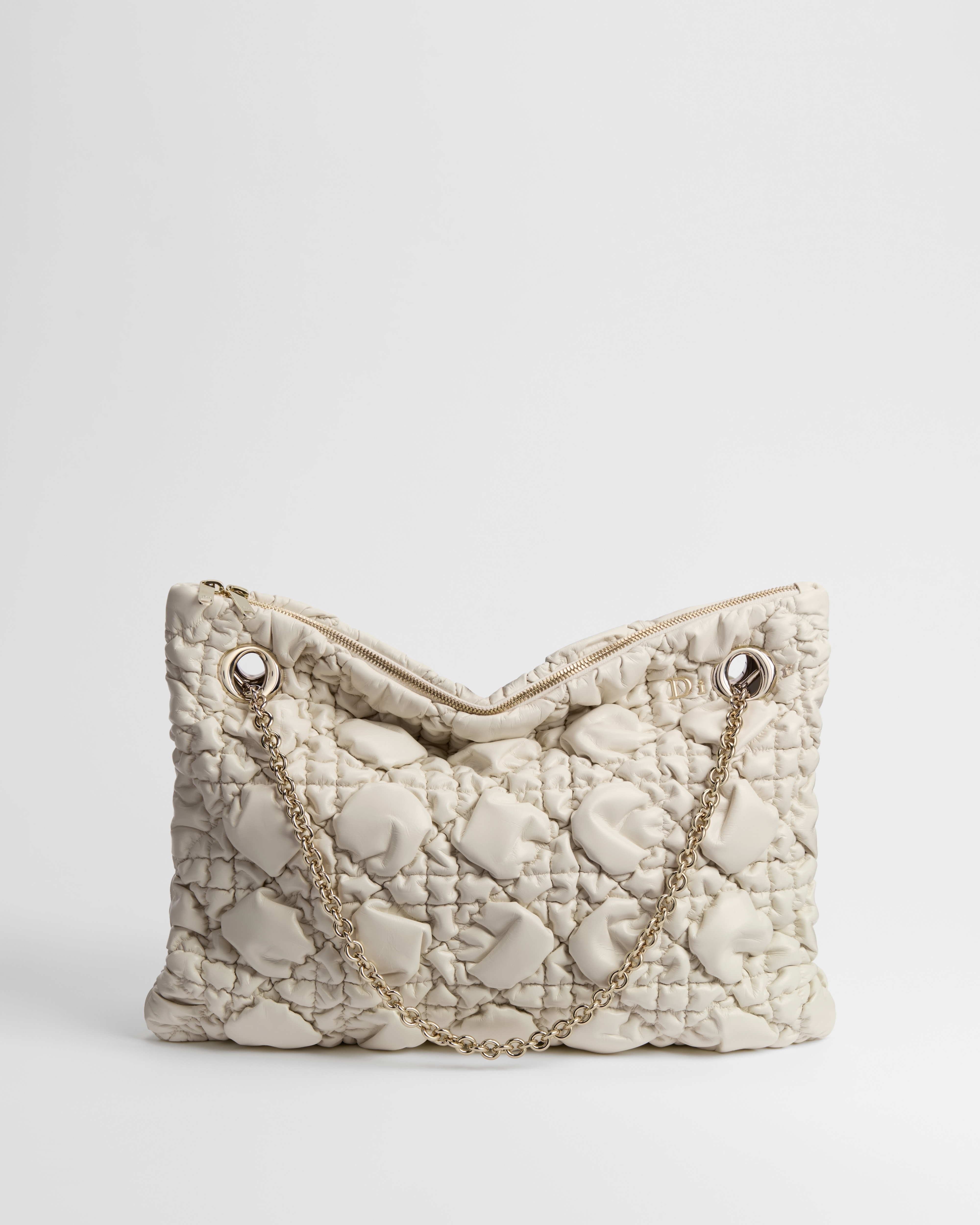 这款 Dior Crunchy 手袋由乔纳森·安德森 (Jonathan Anderson) 倾情呈献,款式柔软,适合日常使用。饰以蓬蓬超大藤格纹,为经典图案注入立体风格。中号款式,搭配双链条肩带,点缀以特色孔眼,可手提或肩背。