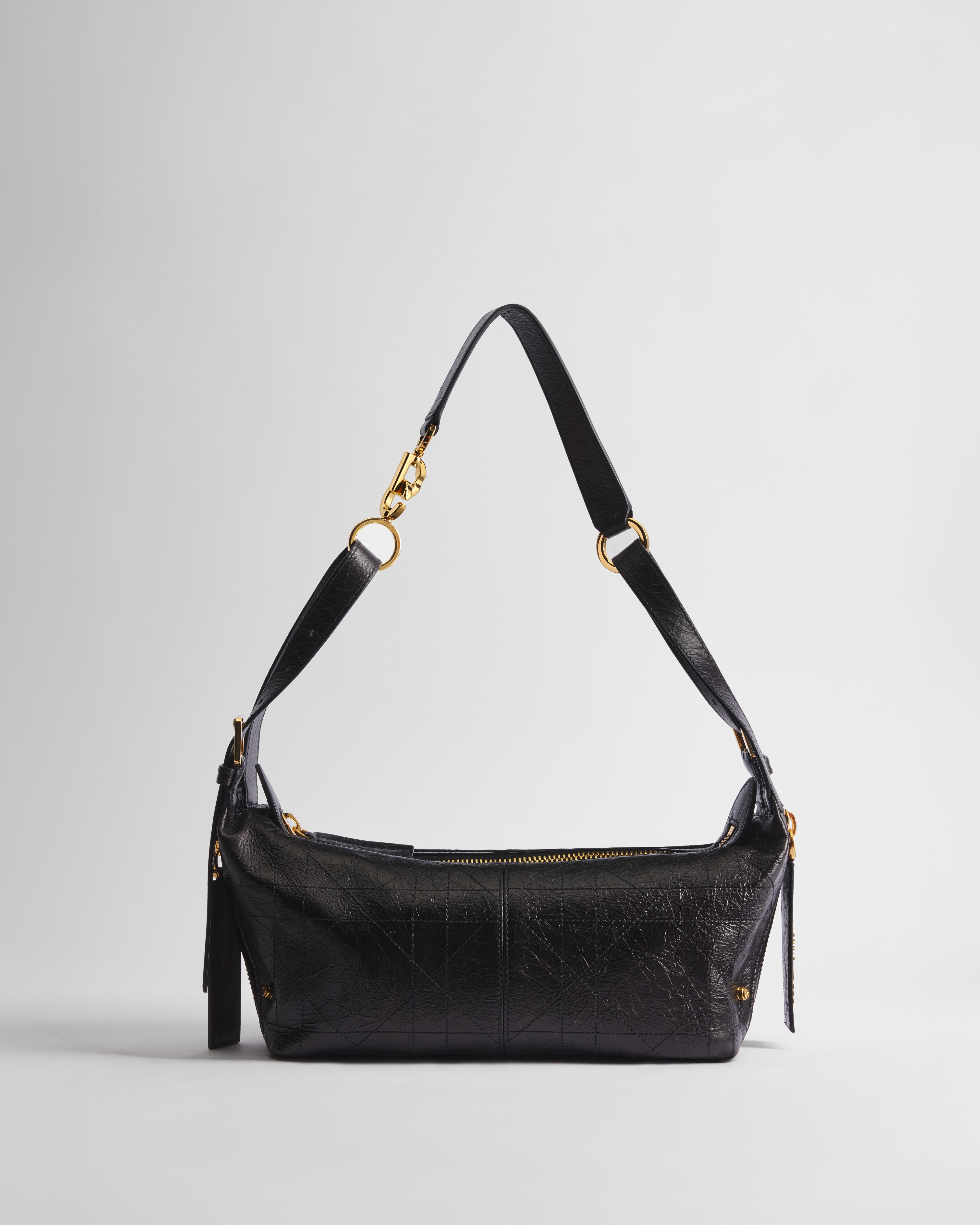 黑色褶皱牛皮革扁平超大藤格纹