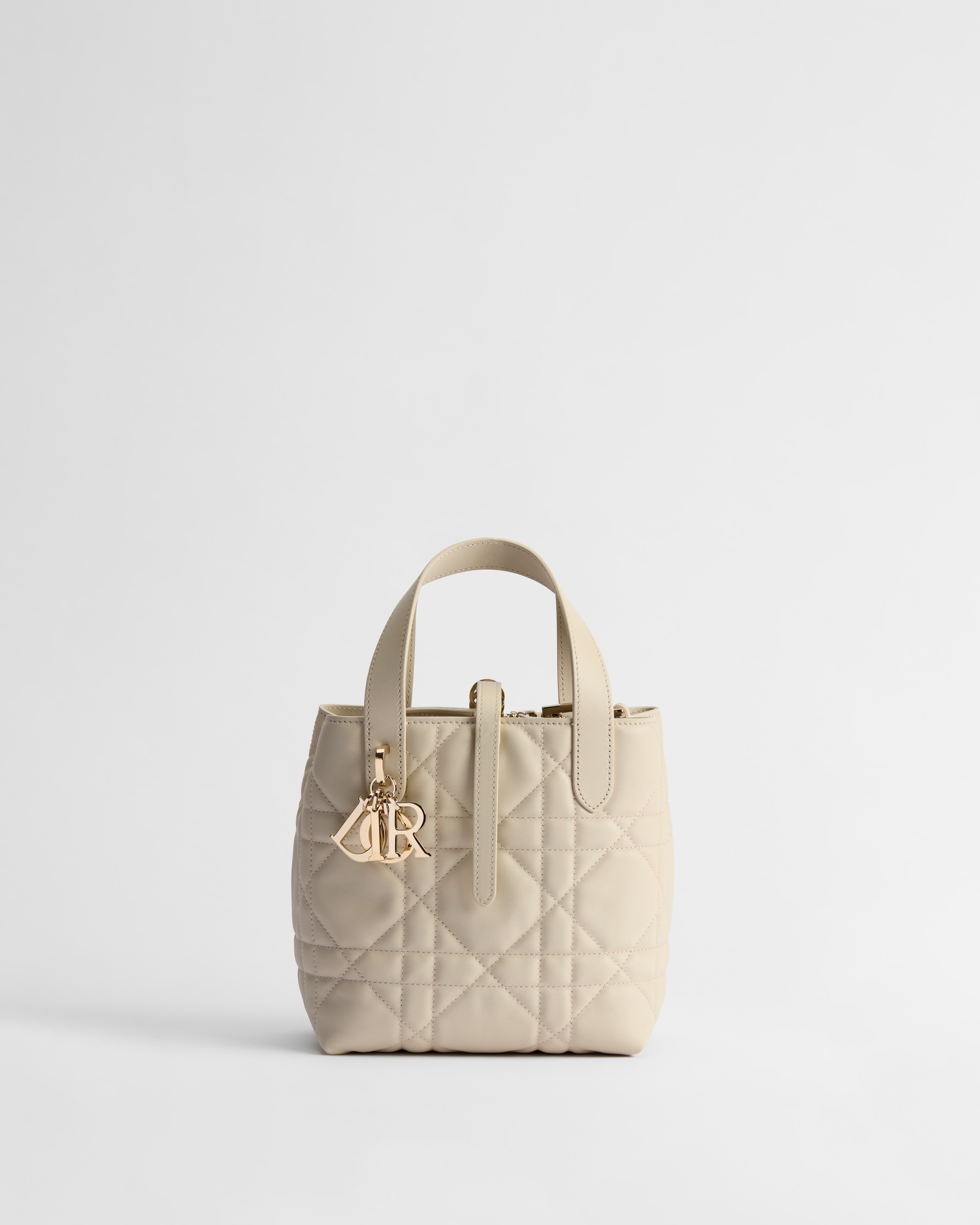 这款 Dior Toujours 竖版手袋时尚实用,别具一格。采用粉笔米白 (Craie) 牛皮革精心制作,饰以超大藤格纹缉面线,宽敞的内部隔层可收纳各种日常用品。设有纤细皮革饰带开合,可安全收纳各种物品,另有 CD Lock 字母 D 旋钮式扣环,可调节两侧,彰显廓形。小号款式,皮革顶部手柄搭配可拆卸的皮革肩带,可手提、肩背或斜挎。