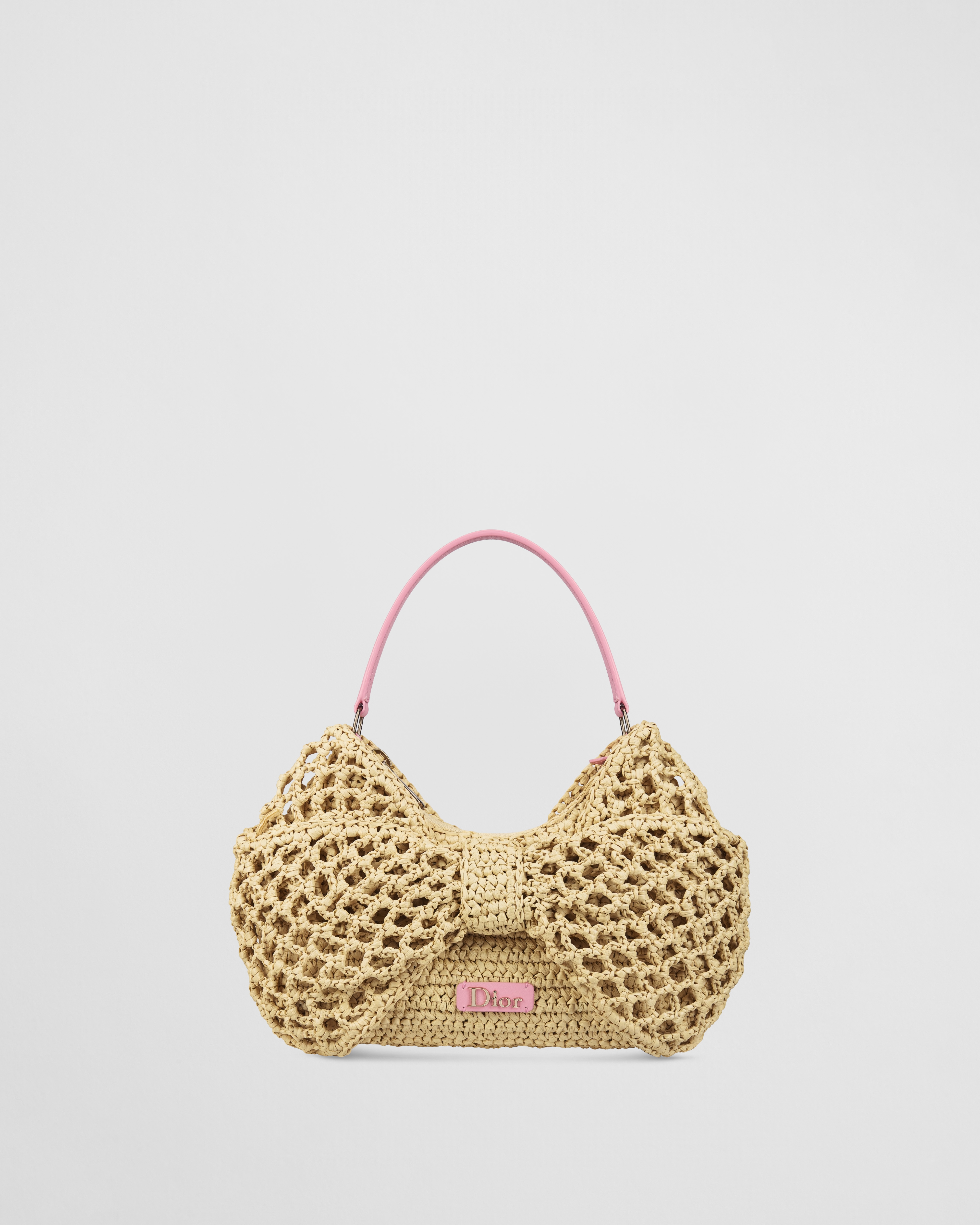 正面饰以金色饰面金属 Dior 标志点缀的粉色皮革标签