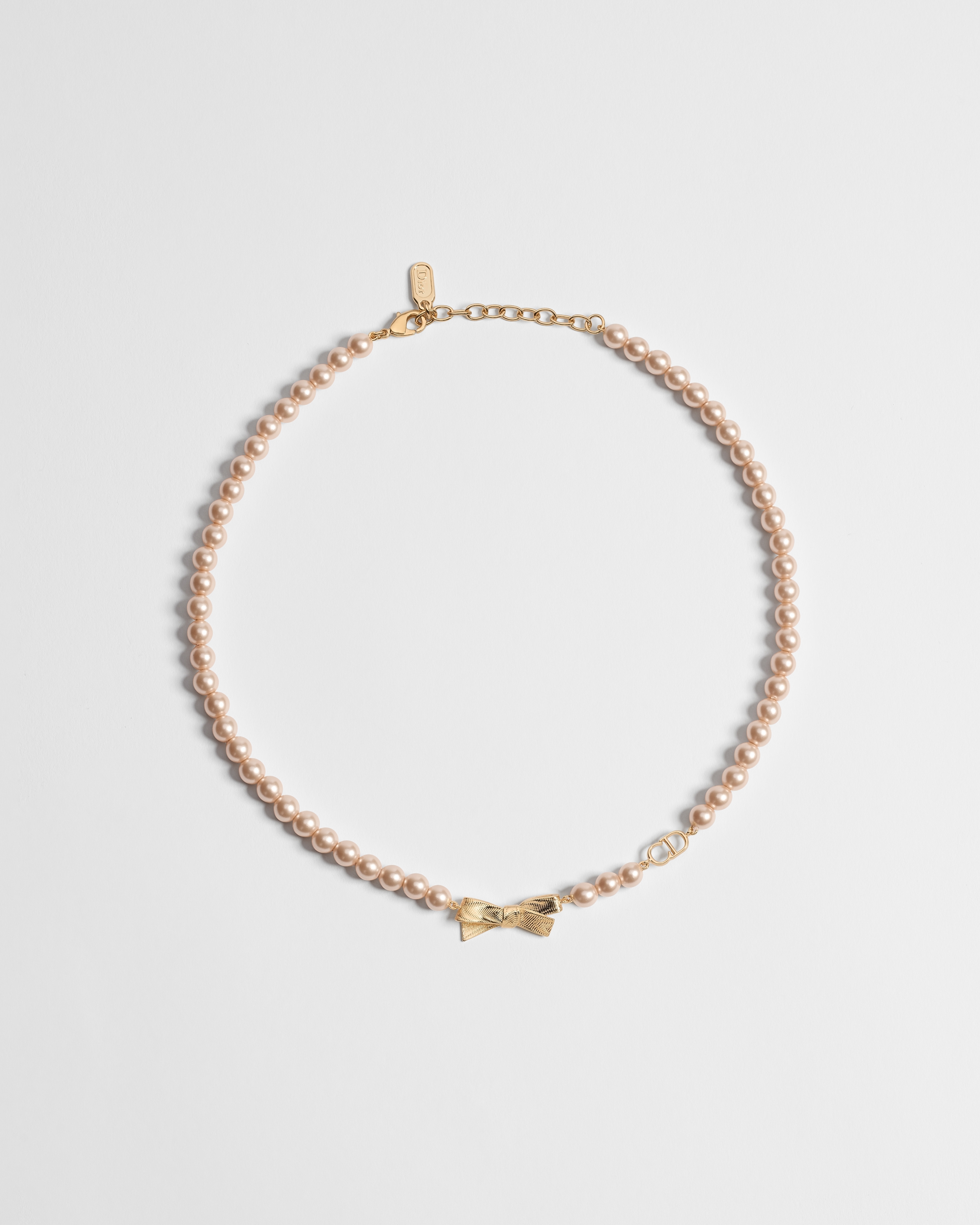 乔纳森·安德森 (Jonathan Anderson) 以 CD Bow 项链重新诠释 Dior 的经典蝴蝶结,致敬克里斯汀·迪奥 (Christian Dior) 珍爱的标识。金色饰面金属设计,饰以荧光粉色树脂珠饰,点缀以 CD 标志和以玑镂细节打造波纹效果的蝴蝶结提升格调。款式高雅,可与同一系列的其他单品搭配。