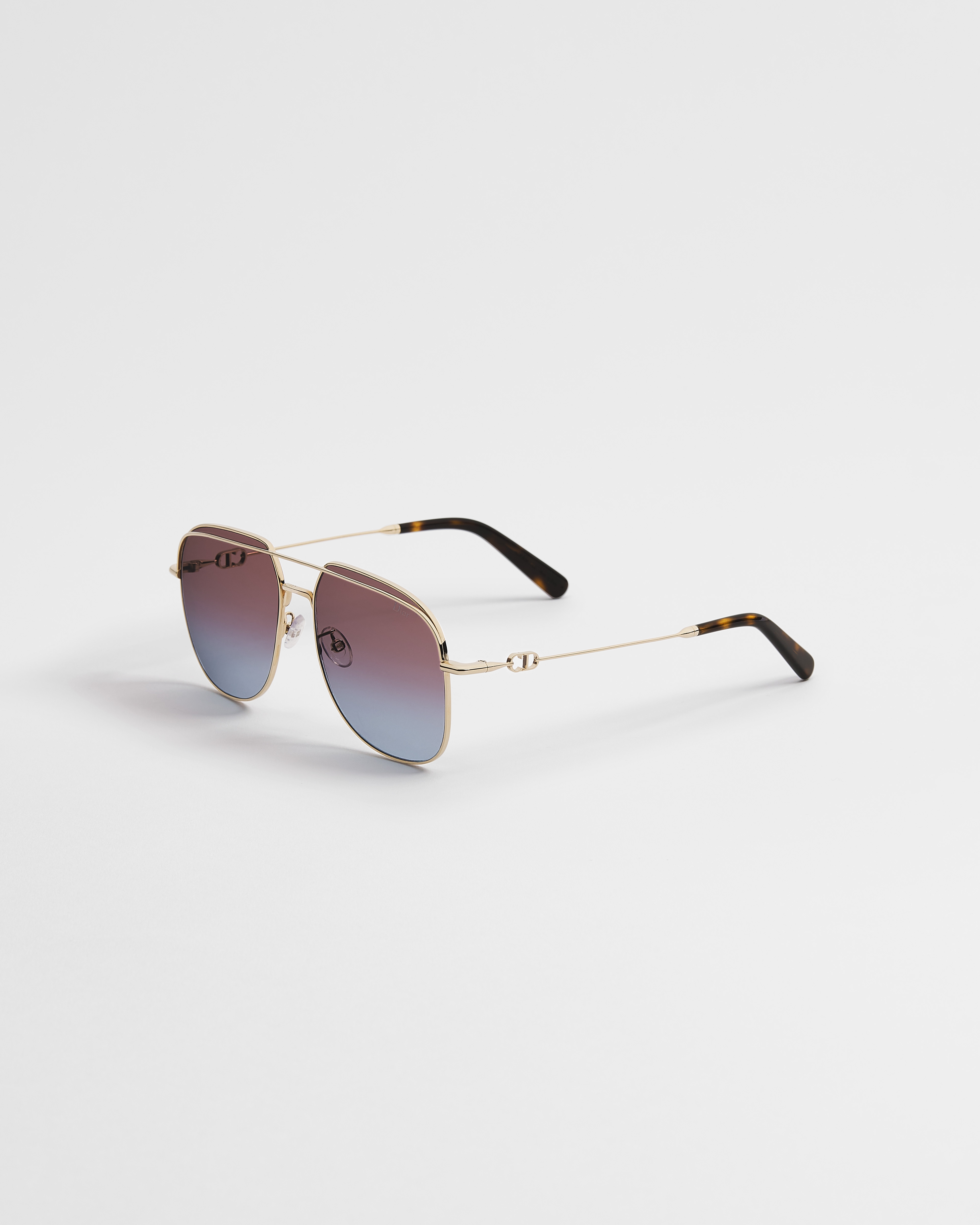 这款 Petit CD A1U 太阳眼镜以飞行员造型镜框彰显现代风范。采用玫瑰金色饰面金属细镜框,镜腿饰以 CD 标志铰链。经典款式,搭配酒红色至蓝色渐变镜片更显精致,可为各式造型增添高订气质。