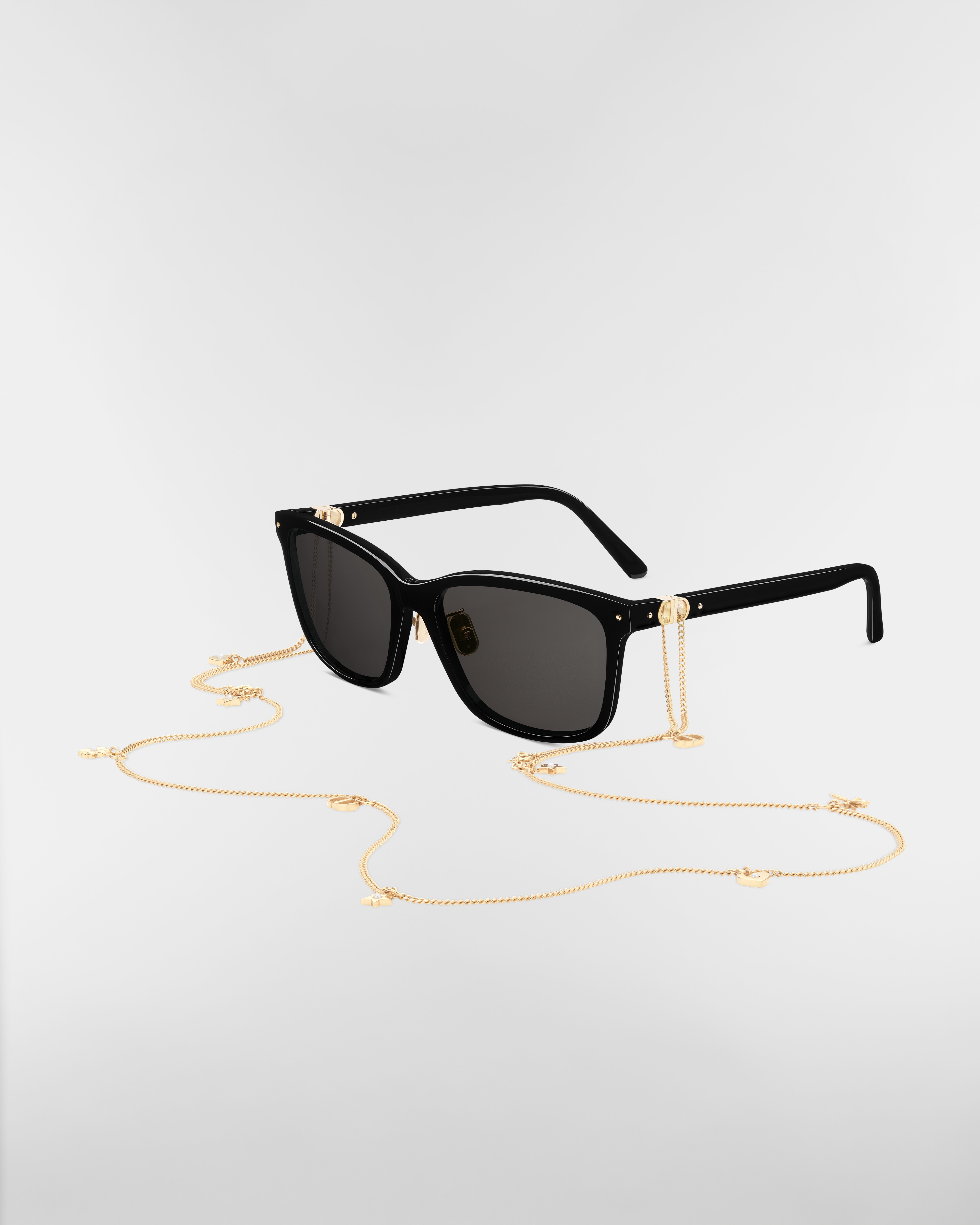 黑色正方形镜框搭配 Dior Lucky 金色饰面金属链条