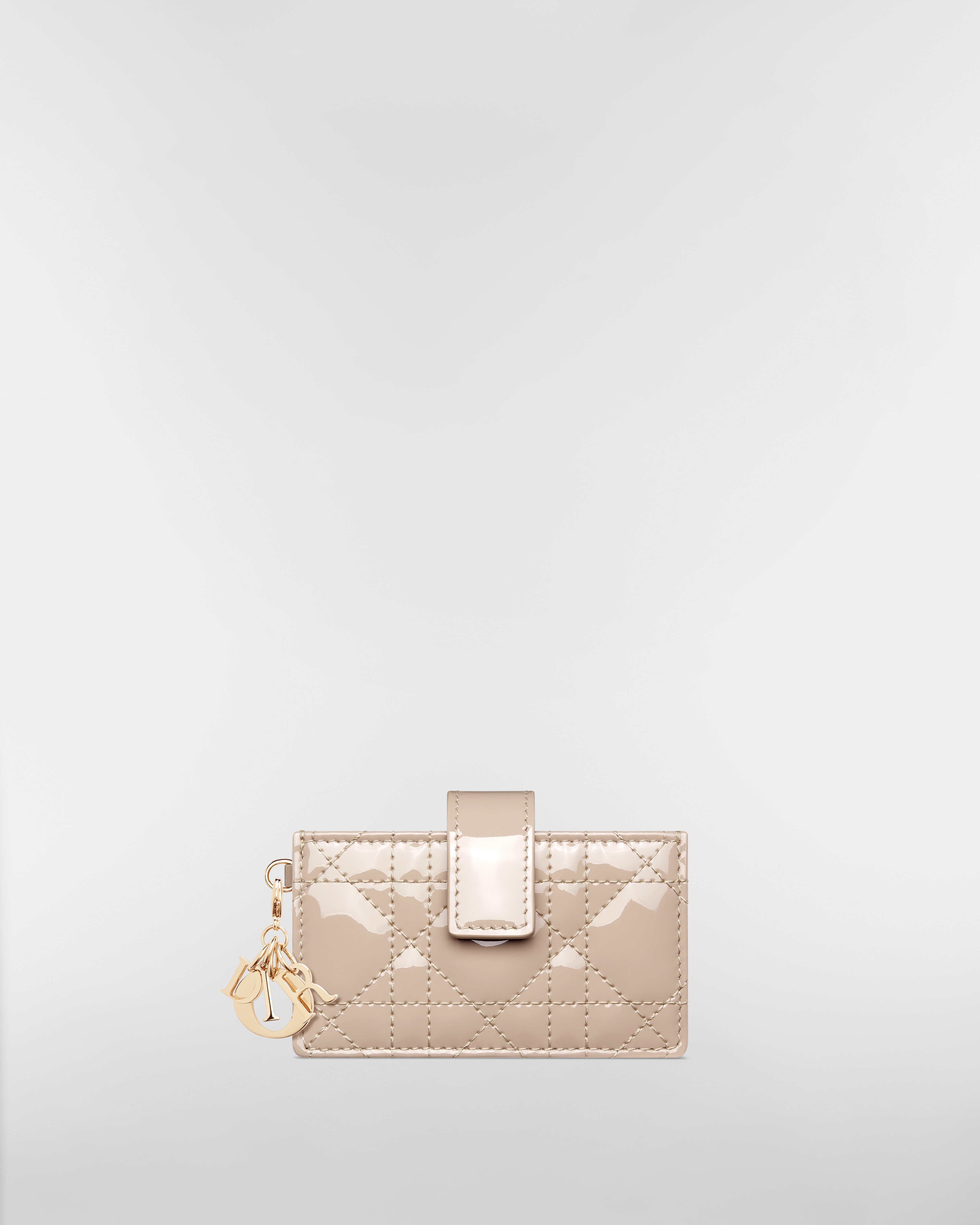 这款 Lady Dior Jasmine 卡夹饰有经典的藤格纹缉面线,向 Dior 皮革工匠的精湛工艺致敬。采用胭脂米色漆皮牛皮革精心制作,精巧实用,可收纳各种日常用品。饰以三角形衬料,搭配可拆卸 D.I.O.R. 吊饰和饰带按扣开合,可与其他 Lady Dior 单品搭配,打造配套造型。