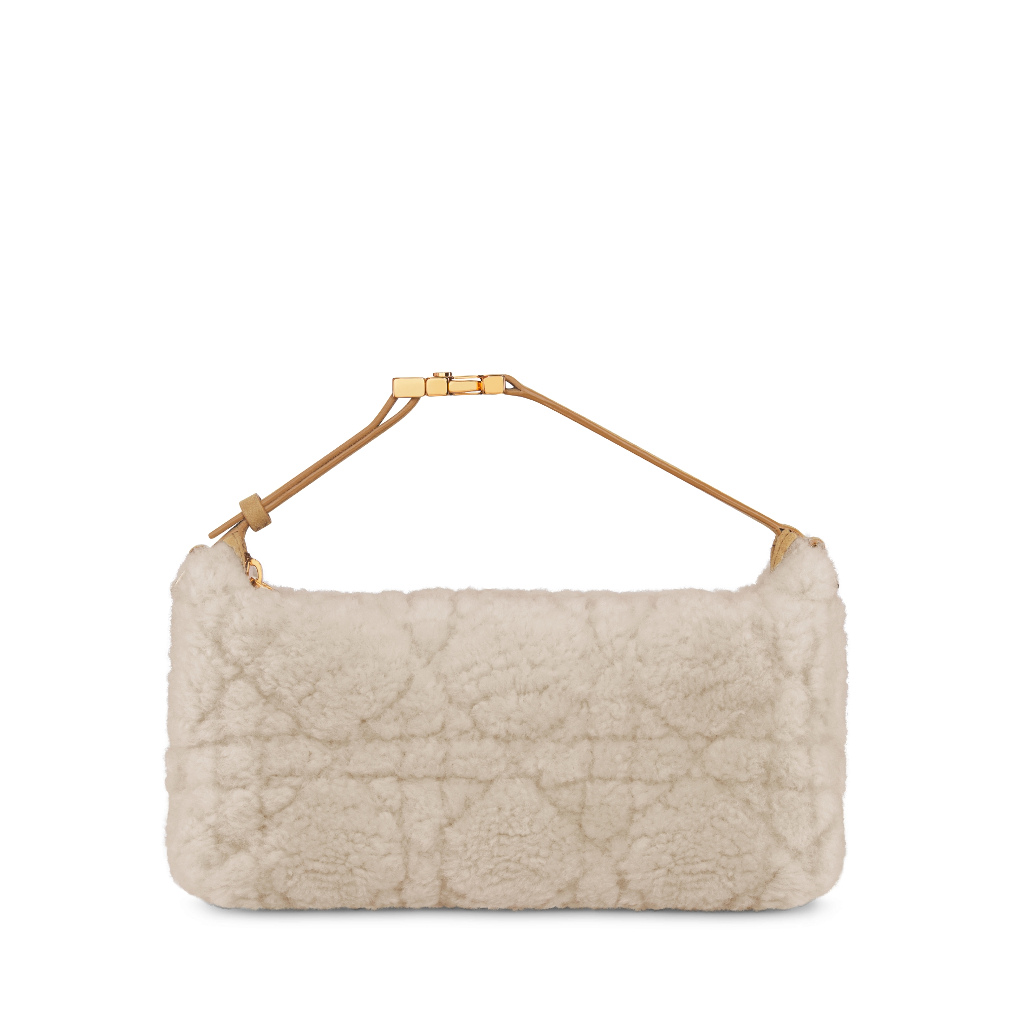 米白色羊皮革皮毛一体藤格纹