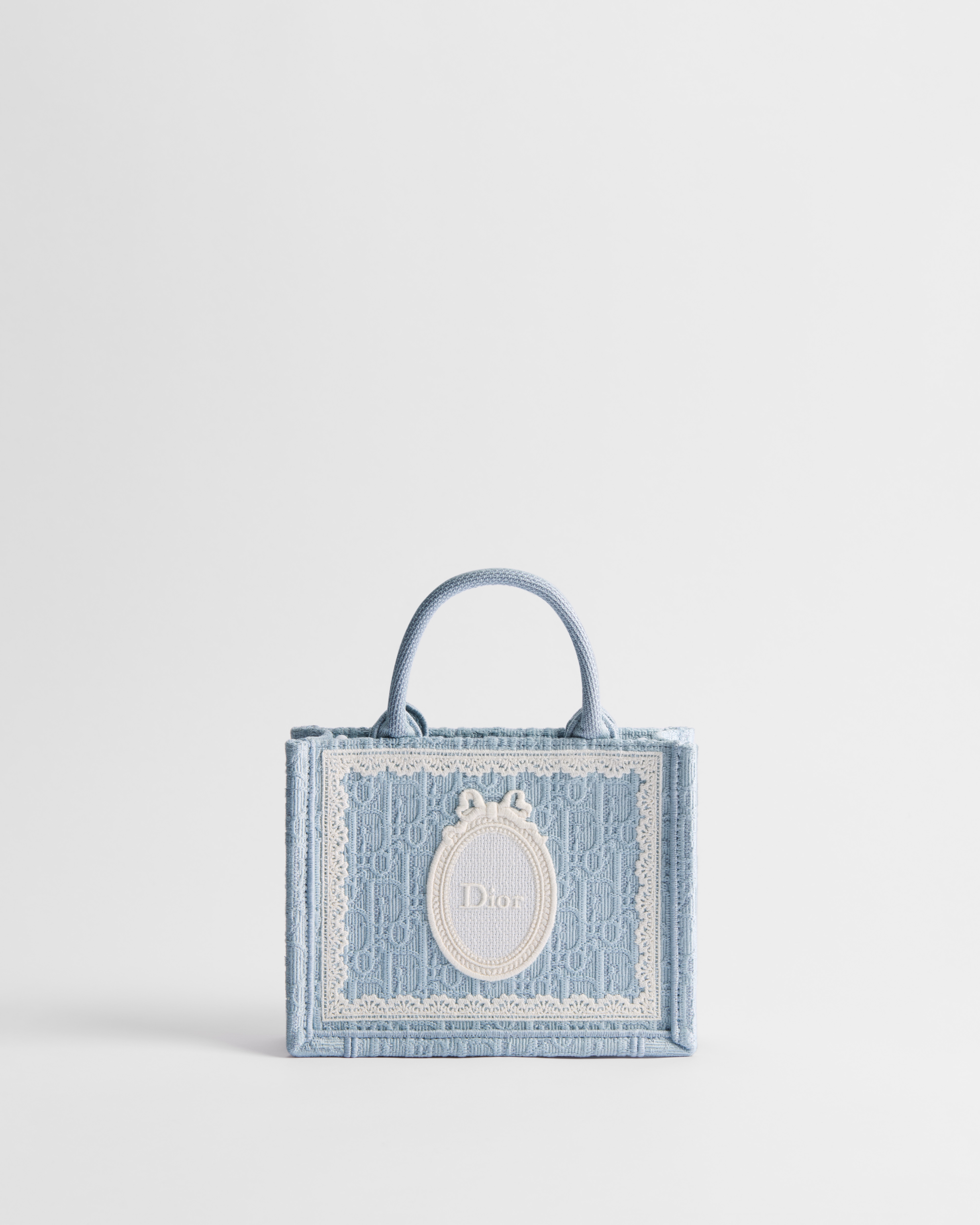天蓝色 Oblique 印花面料搭配白色蕾丝和 Dior Médaillon 标志(21 x 16 x 6.5 厘米)
