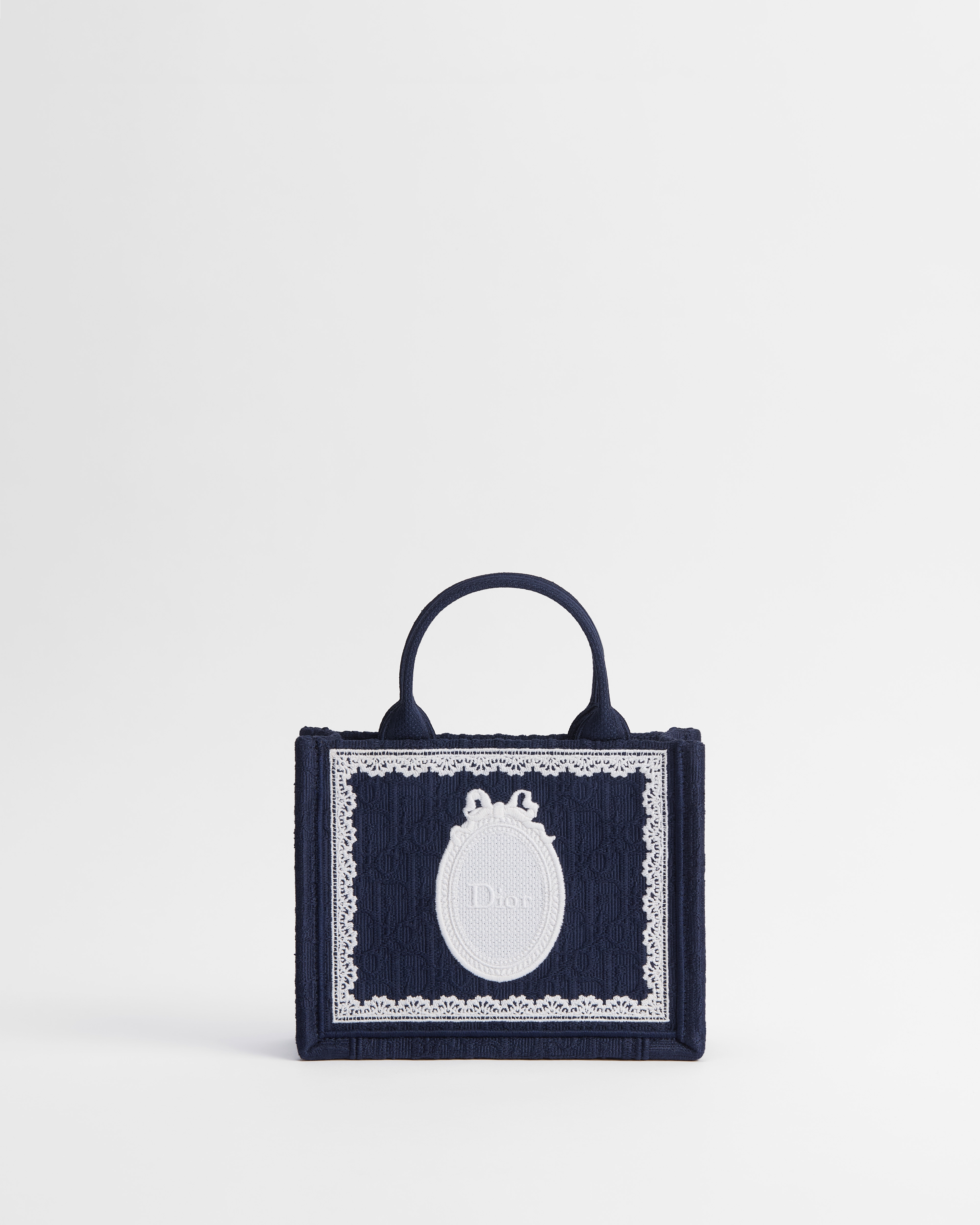 蓝色 Oblique 印花面料搭配白色蕾丝和 Dior Médaillon 标志(21 x 16 x 6.5 厘米)