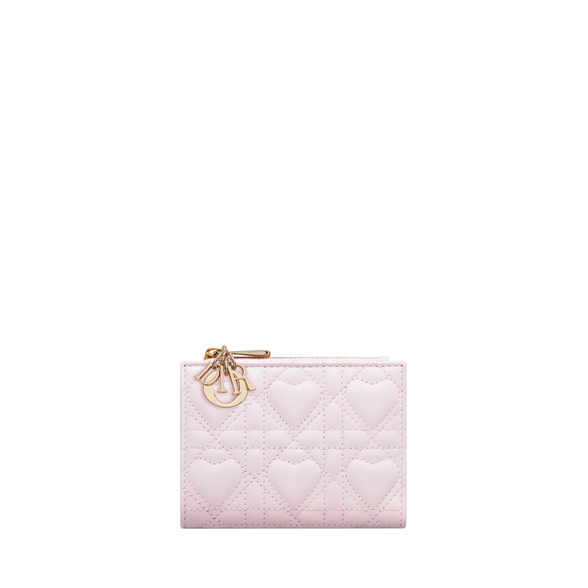 这款 Lady Dior Dahlia 钱包来自 Dior Lucky 限定系列,优雅实用。采用淡粉色羊皮革精心制作,饰以藤格纹和心形图案缉面线。款式精美,空间宽敞,点缀以可拆卸的浅金色饰面金属 D.I.O.R. 吊饰,适合各种场合。可与其他 Dior Lucky 单品搭配,打造优雅的配套造型。