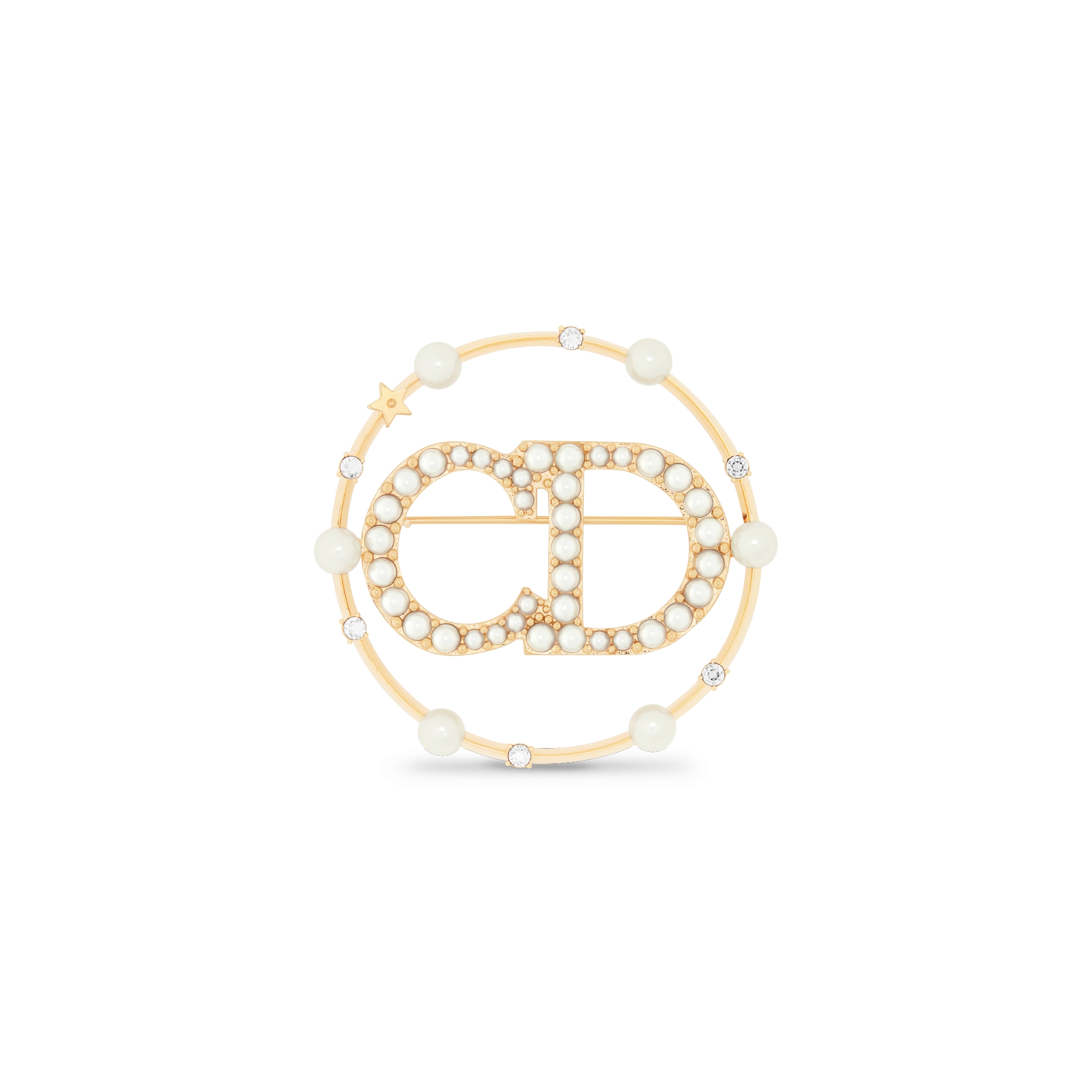 金色饰面金属、白色树脂珠饰和白色仿水晶装饰