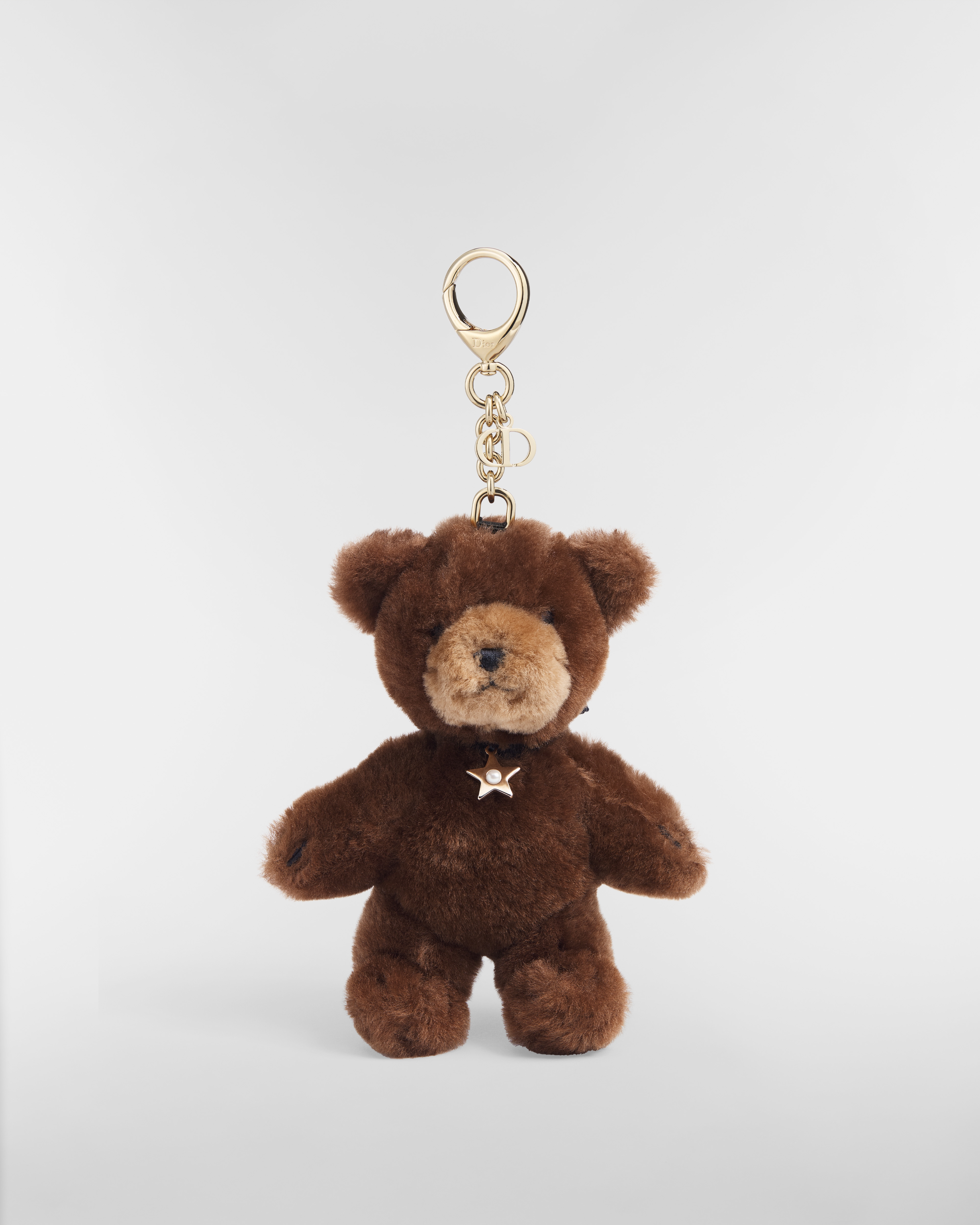 棕色绵羊毛、浅金色饰面金属和白色树脂珠饰