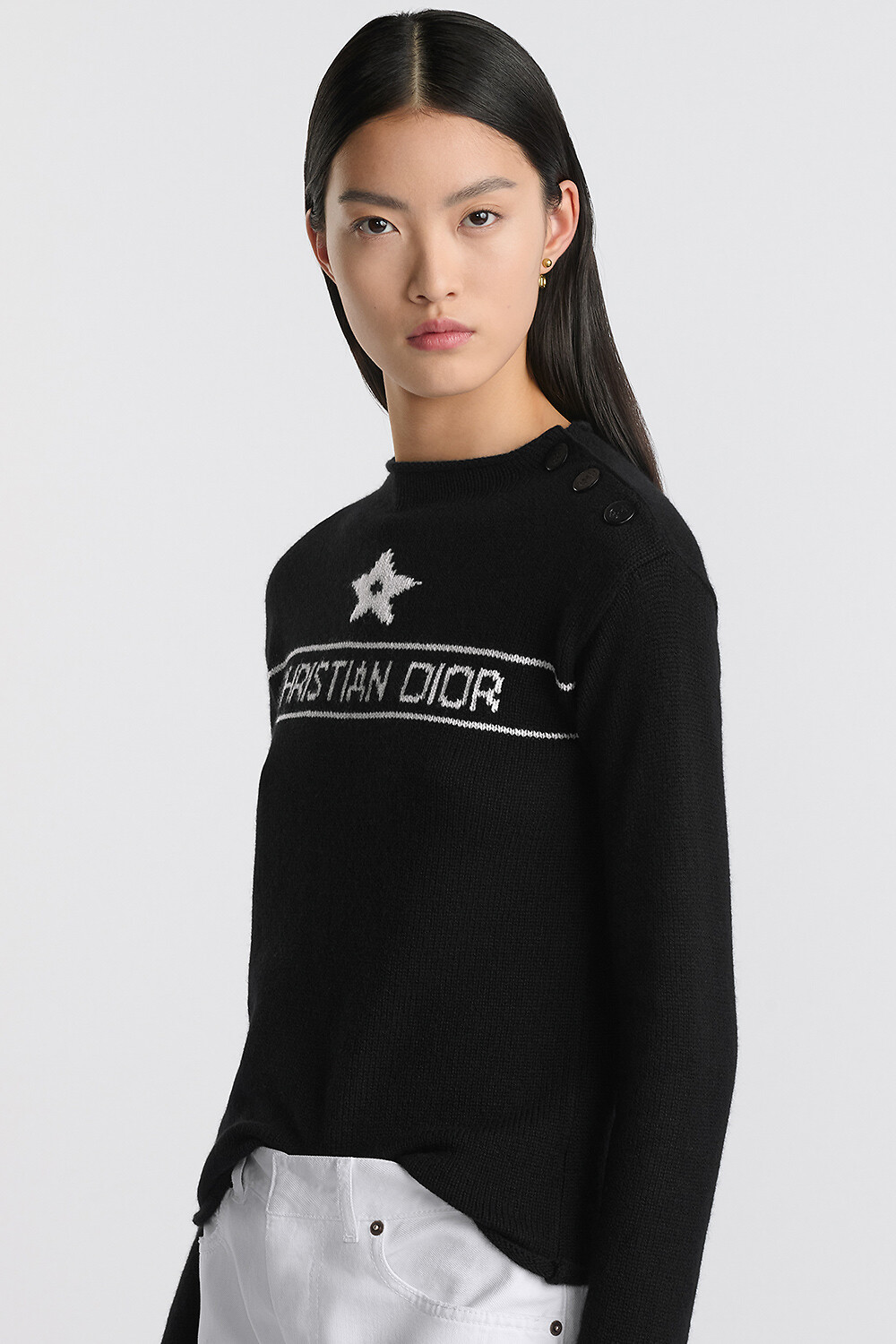 白色山羊绒针织面料黑色 Dior Alphabet 图案